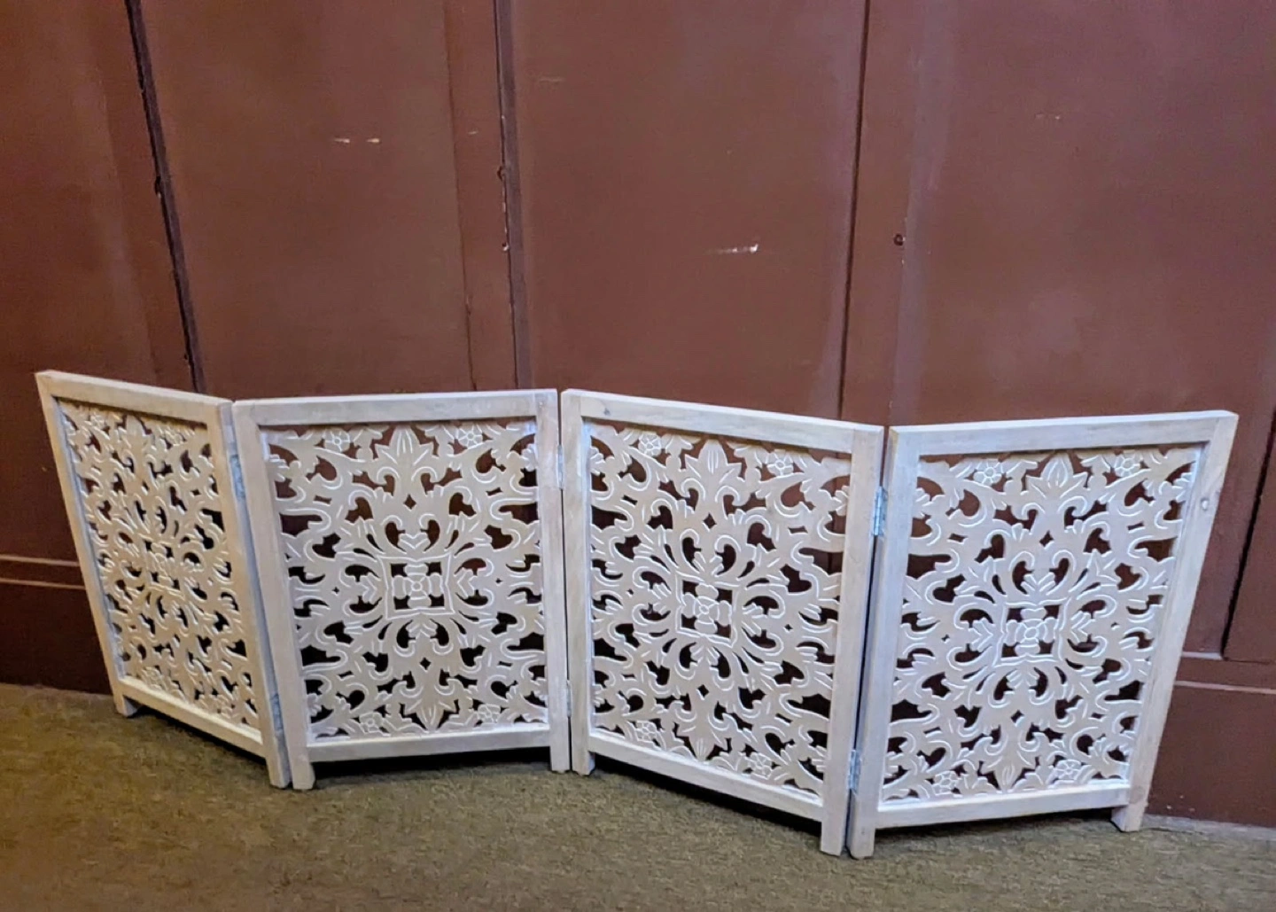 Shabby chic , Half height room divider, 4 pannel, carved wood