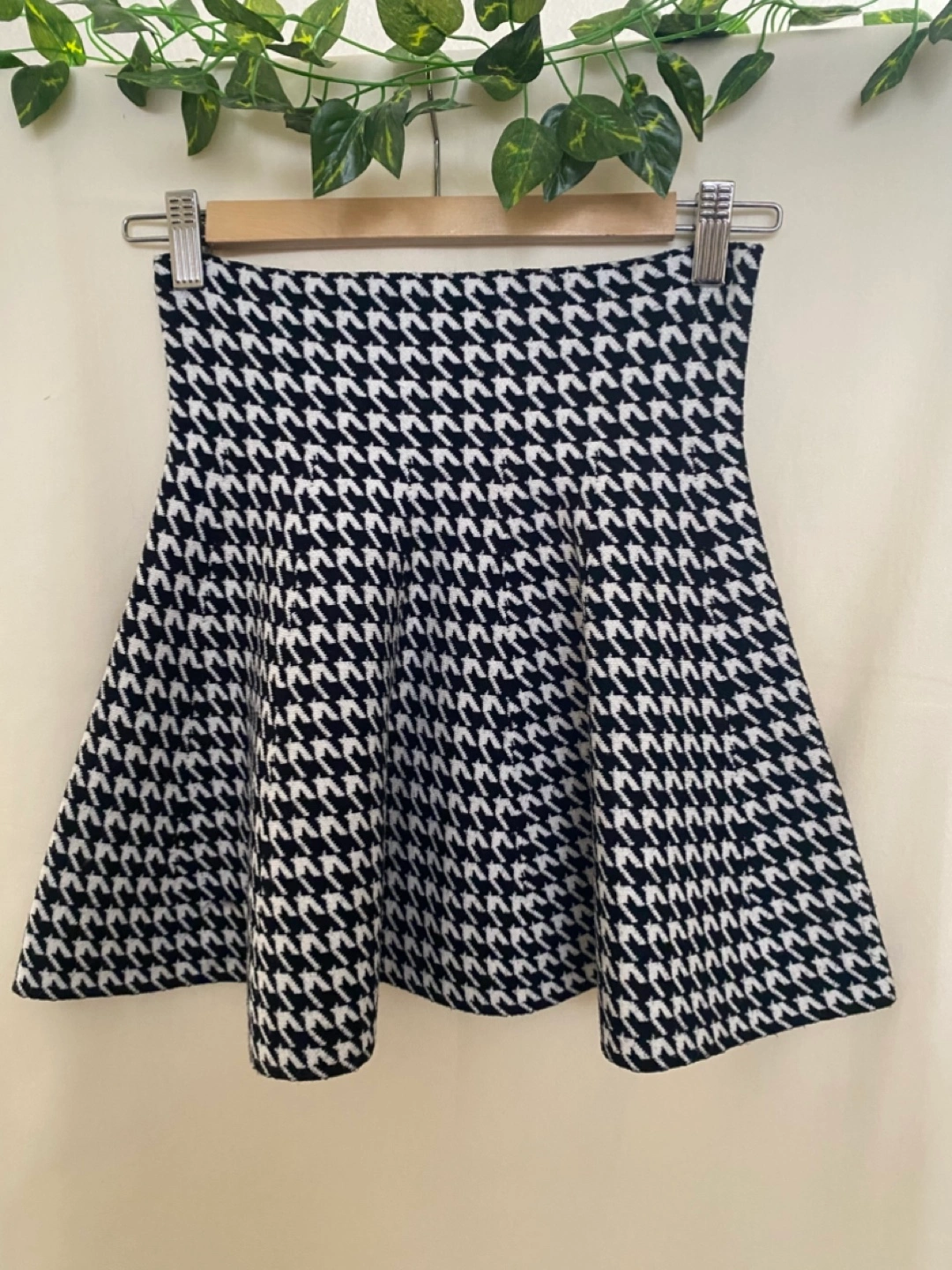 Adorable flared skirt. Classic black and white houndstooth pattern. Knit fabric. Great for fall and winter.