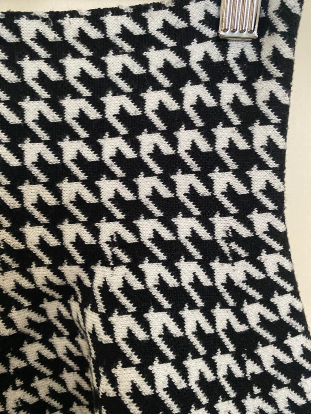 Black and White Houndstooth Knit Mini Skirt