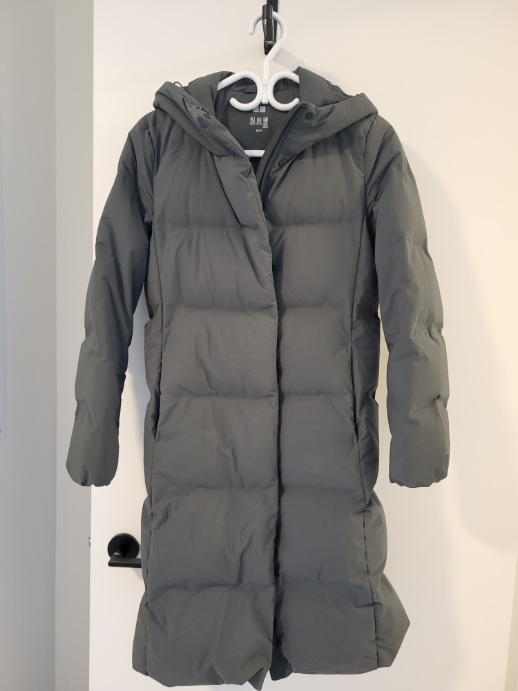 Uniqlo Women's Dark Green Long Down Jacket - Size XS