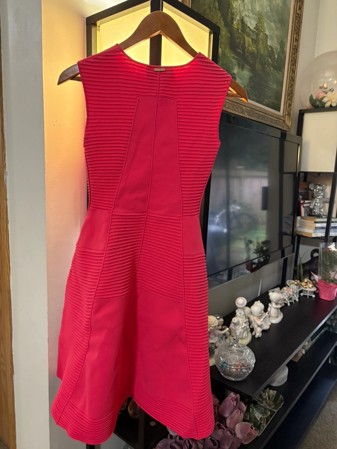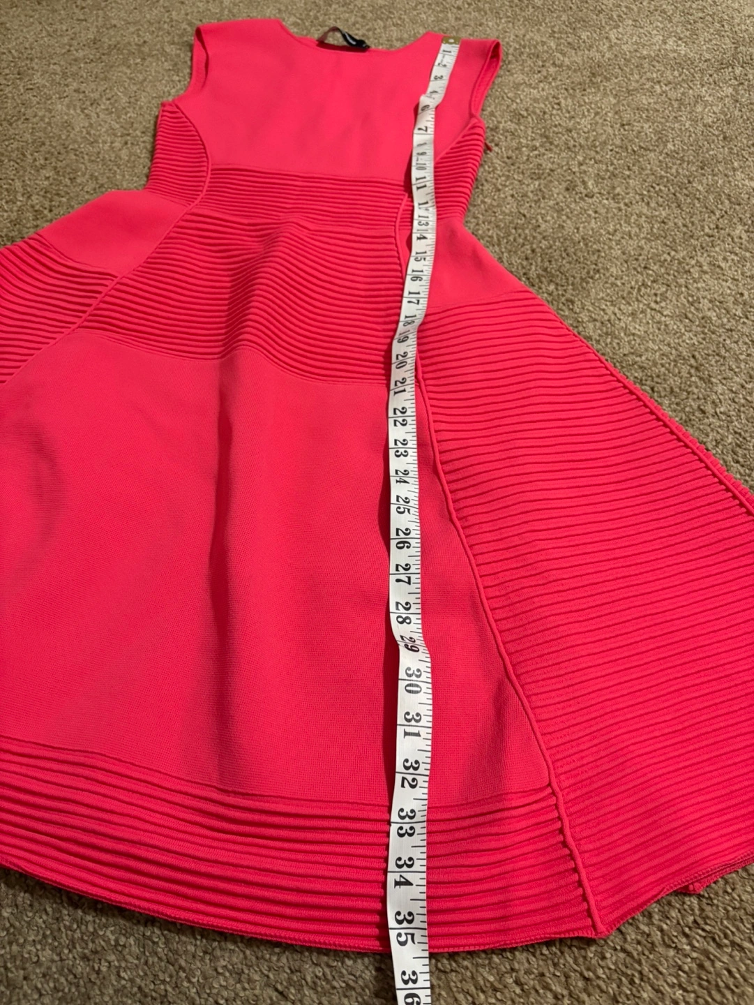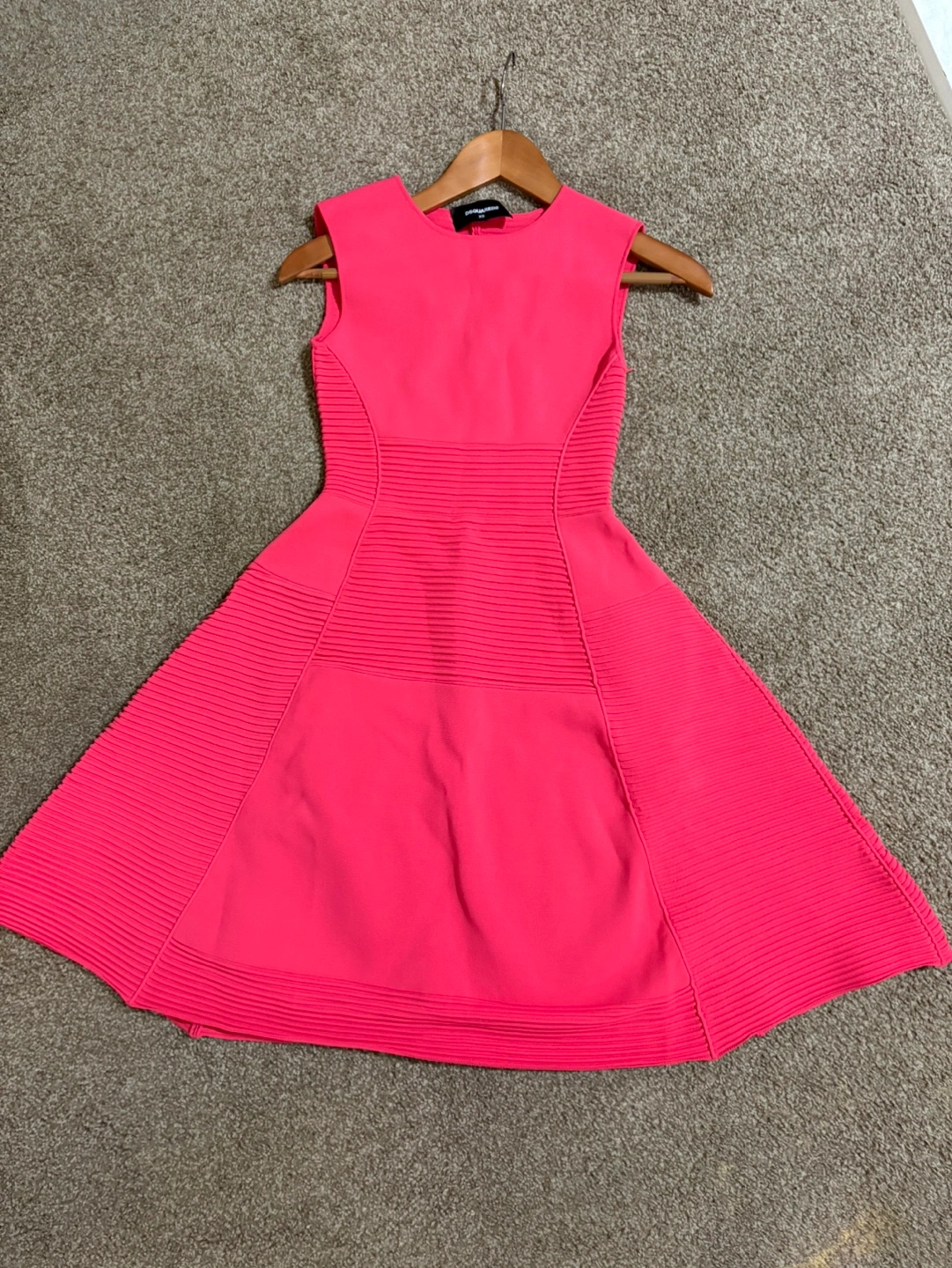 Beautiful pink dress. Sleeveless, fit and flare style. Features vertical ribbed detailing. Side zipper closure. Excellent condition.