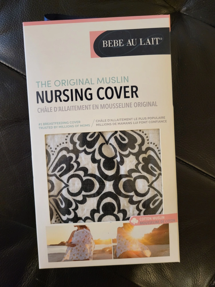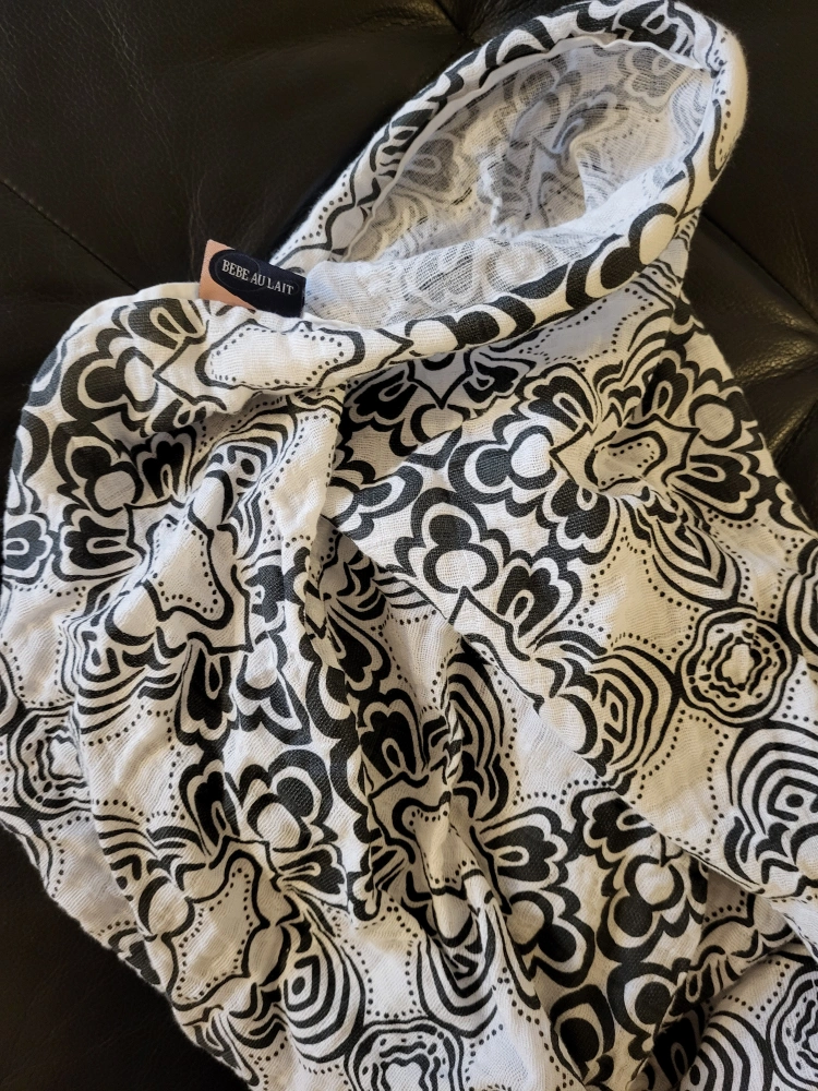 573Nursing cover, cotton muslin. Lightweight and breathable. Generously sized. Black and white pattern. Never used.