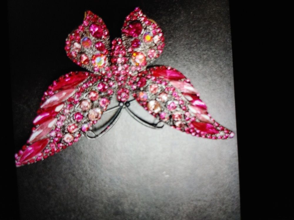 29Gorgeous pink butterfly hair clip. Jeweled accents. Looks great in hair.