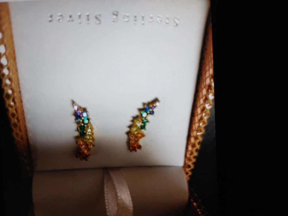 29Gorgeous rainbow coloured crystal earrings. Gold-toned metal. Sold in original packaging.silver set