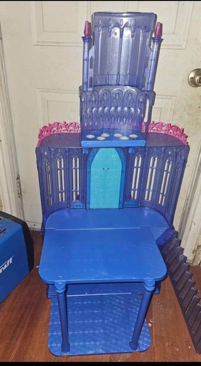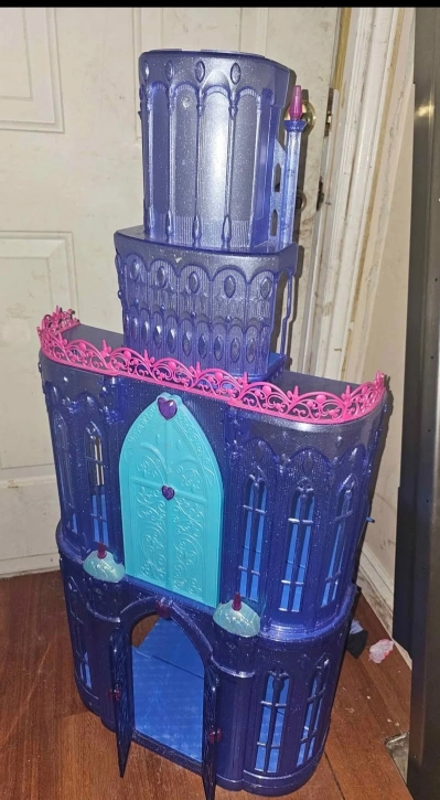 Large multi-level castle playset. Features multiple rooms and accessories. Some wear and tear.