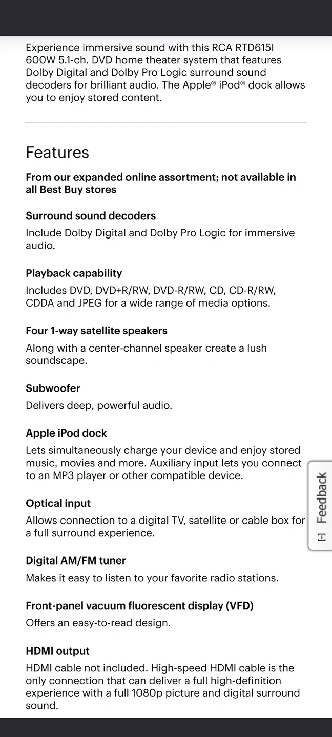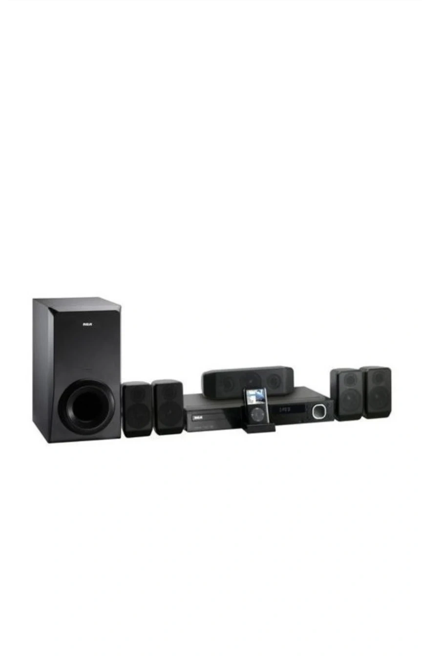 DVD system that also includes (pre-lightning connect) ipod/iphone port, AM/FM antennas, remote, front, rear and center speakers, and subwoofer.