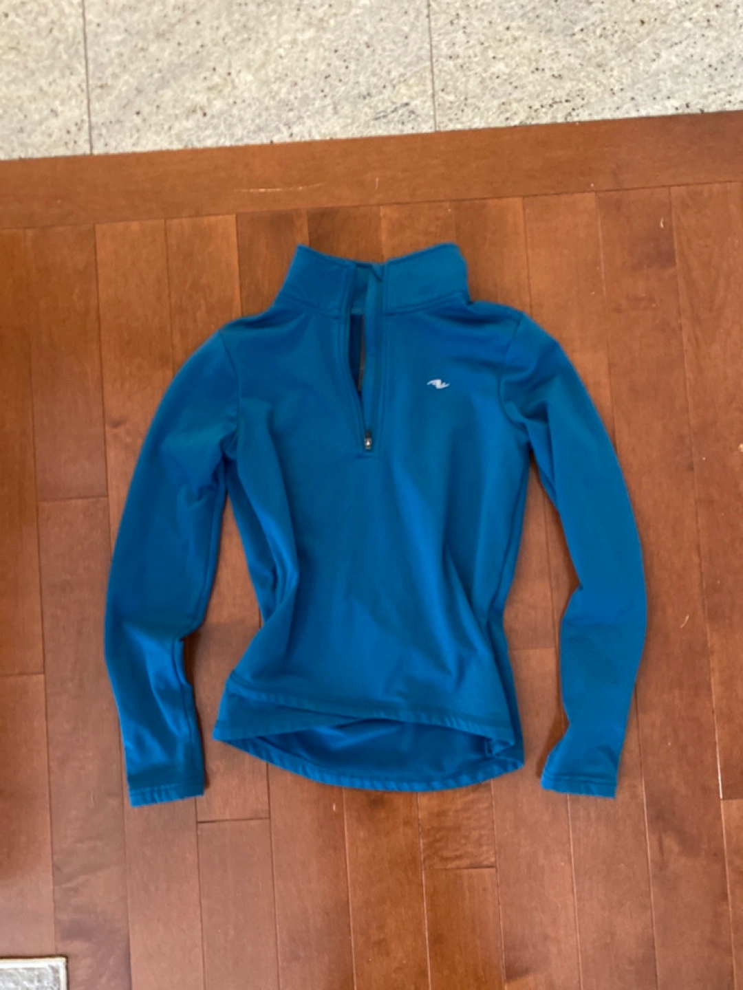 Teal kids size Large (10-12) athletic sweater. Great to layer because of its tight fit.