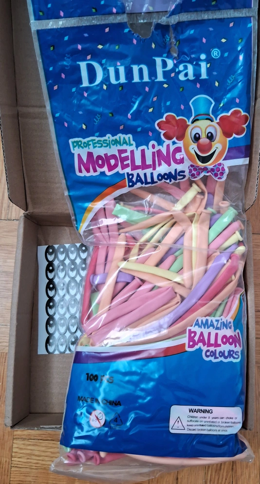 New package of 100 modelling balloons. Pastel colours. Professional modelling balloons. Great for parties and events. Made in China.