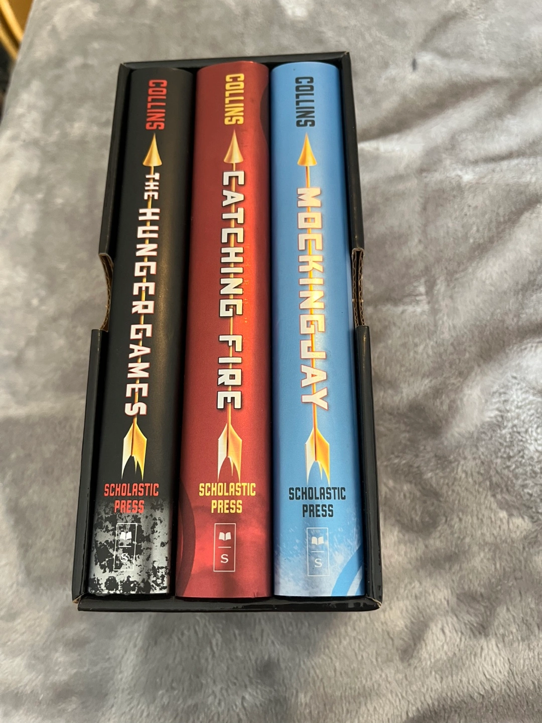 Complete set of three books. Scholastic Press edition. Good condition. Includes slipcase. Hard cover