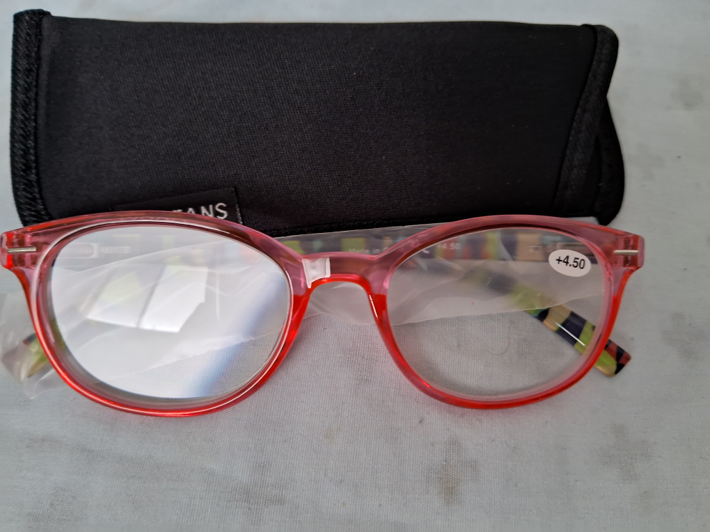 1 / 31 / 3Buy & SellRed Reading Glasses +4.50 MODFANSRed Reading Glasses +4.50 MODFANS$5Red plastic frame reading glasses. +4.50 magnification. Includes a black MODFANS case.ConditionNewWHERE TO MEETCheck LocationView MapSELLEREmleyS St. James Town15016 reviews0 chatsΒ·0 favoritesΒ·8 viewsSEND CHAT TO SELLERHi Emley! Iβm interested in your listing.Hi Emley! Iβm interested in your listing.Get the Karrot app to chatSign In to chat