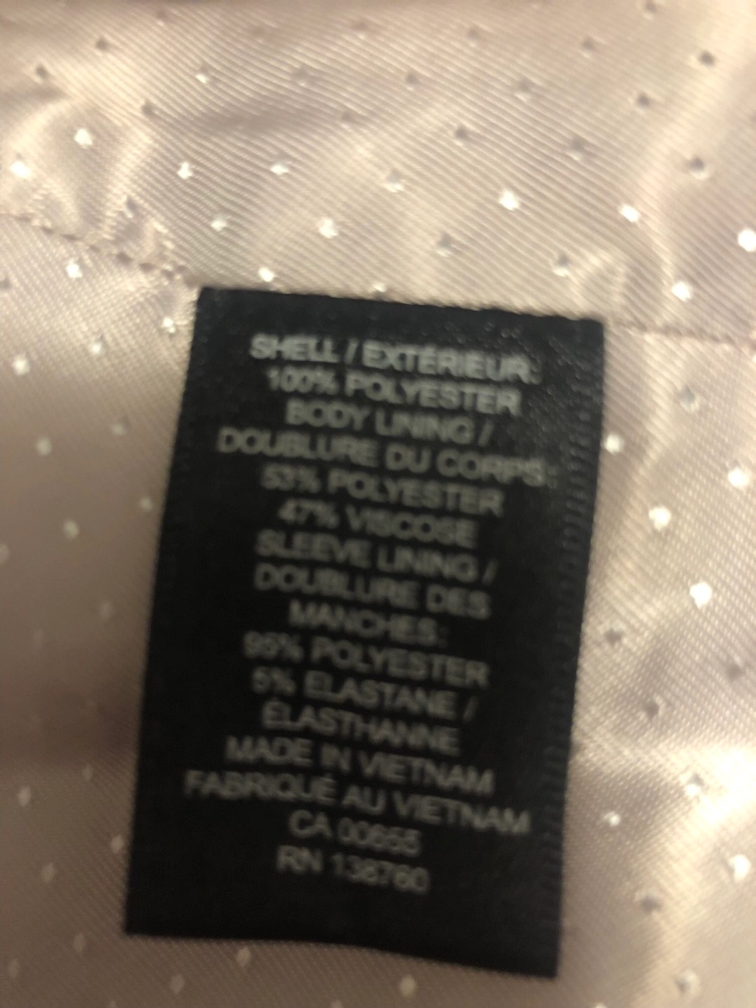 Women's blazer, light pink colour. Size 6. Stretch lining. Features pockets. Made in Vietnam.