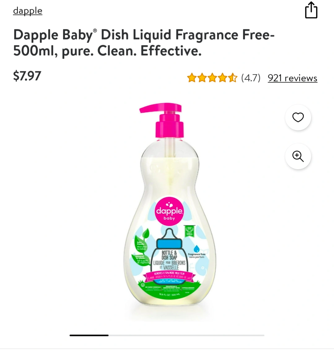 Dapple Baby Fragrance-Free Dish Soap, 500ml 2 for $10