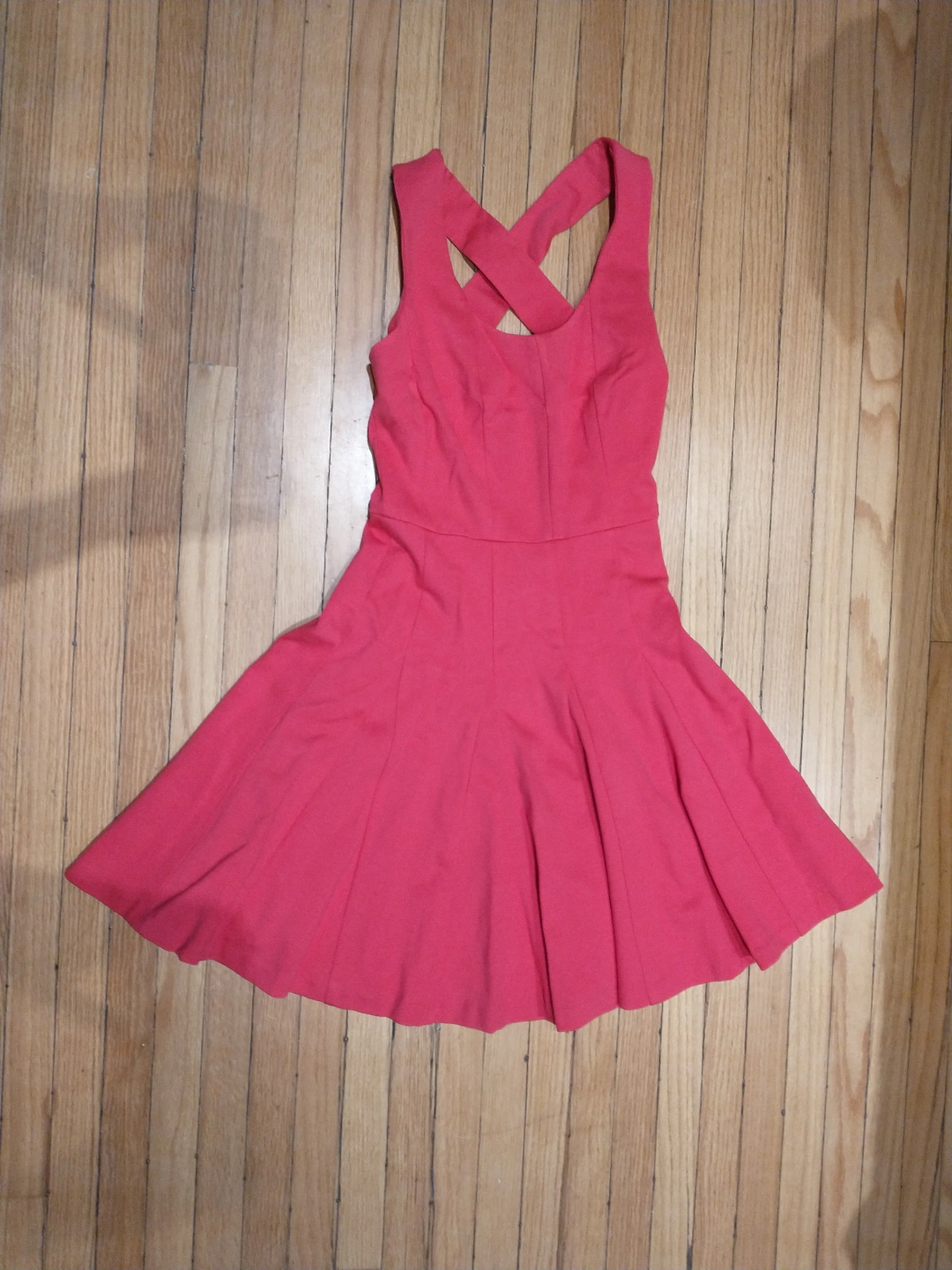 Hot pink dress, fit and flare with a pleated skirt and cross back straps from Banana Republic Invisible zipper and eye hook closure on the side New, never worn. Still has tags Smoke free, pest free home Cash payment please