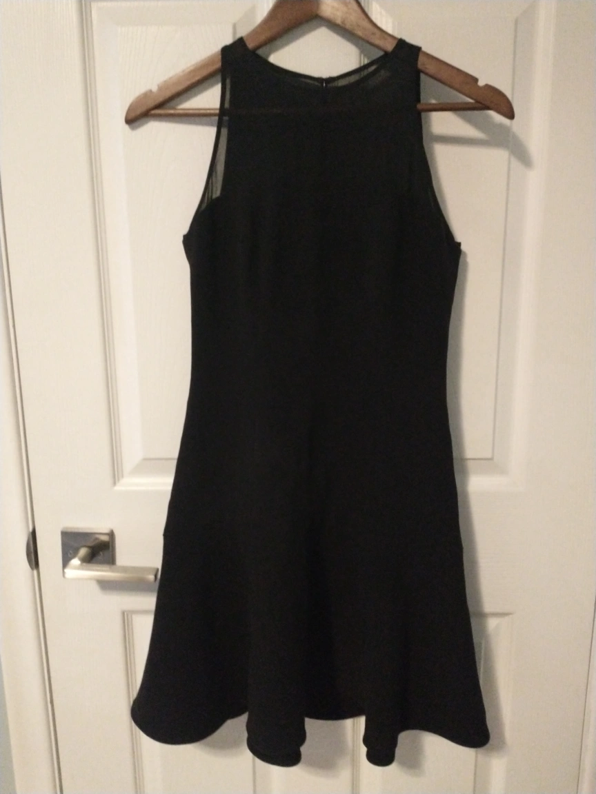 Black Club Monaco dress with a mesh neckline in size 0 Invisible zipper and eye hook closure at the back New, never worn. Still has tags Originally $139 Smoke free, pest free home Cash payment please