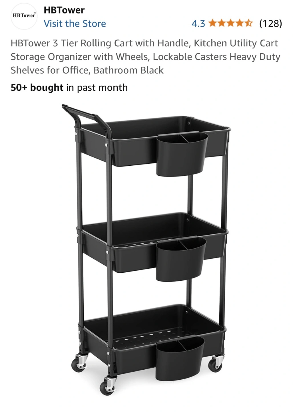 HB Tower 3-Tier Rolling Cart - Black