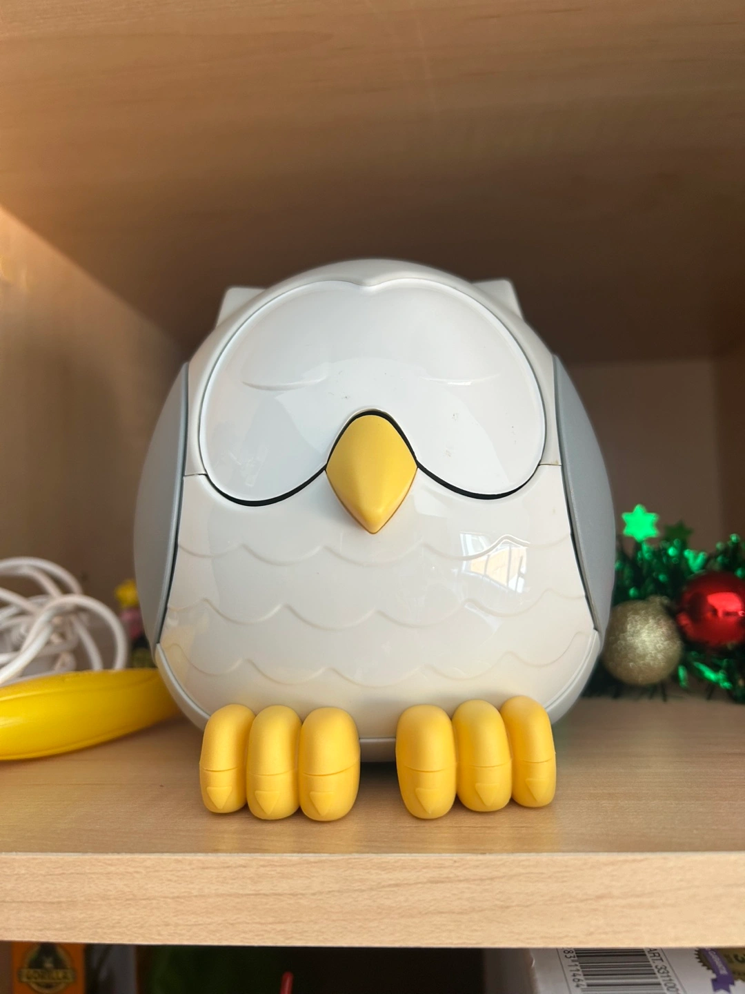 Baby humidifier shaped like an owl. Grey and white with yellow feet. Gently used. Young living it does not have power cord