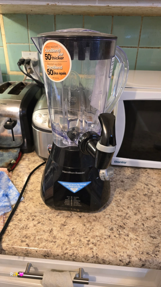 Used Hamilton Beach blender. Features a 50% thicker DuraBlend jar and convenient spout cap storage. Great for smoothies and other blended drinks.