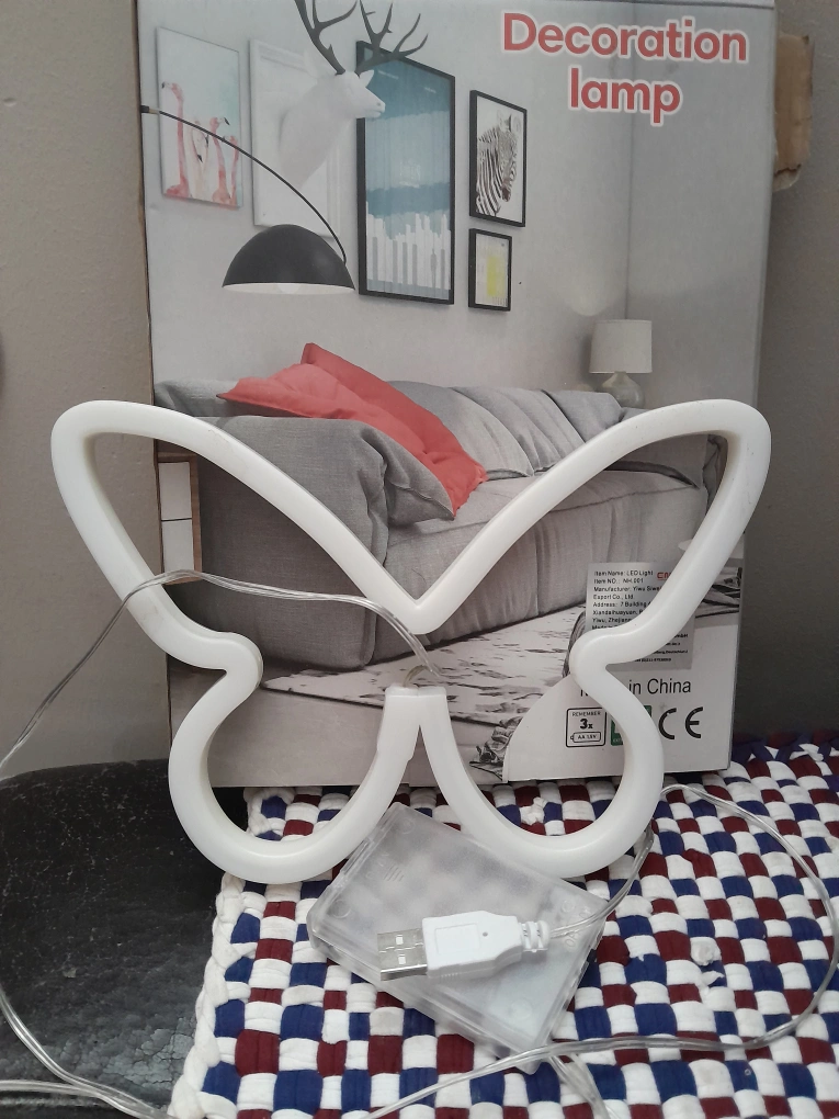 In the picture came out as purple colour but it is actually a light blue colour lamp. It can be use with batteries and USB. Can be use for hanging.