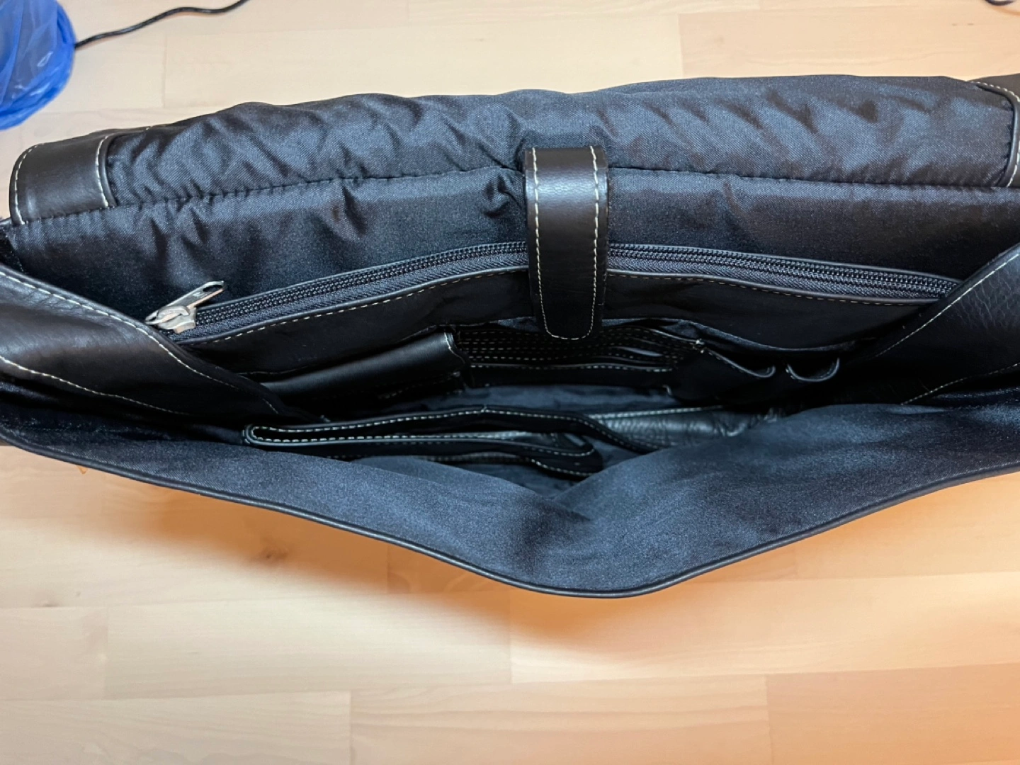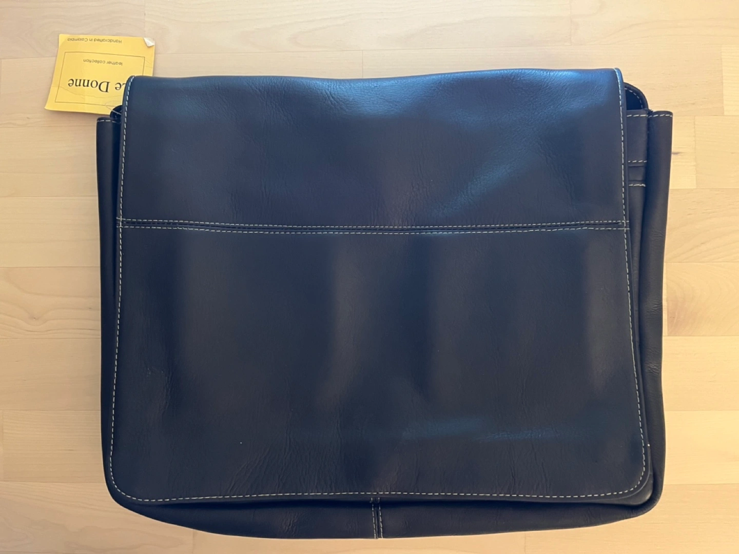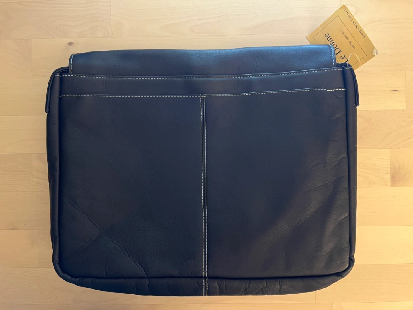 Soft Black Soft Leather With Dark Grey Stichining Fits 13-17 Inch MacBook/Laptop Several Additional Storage Pockets
