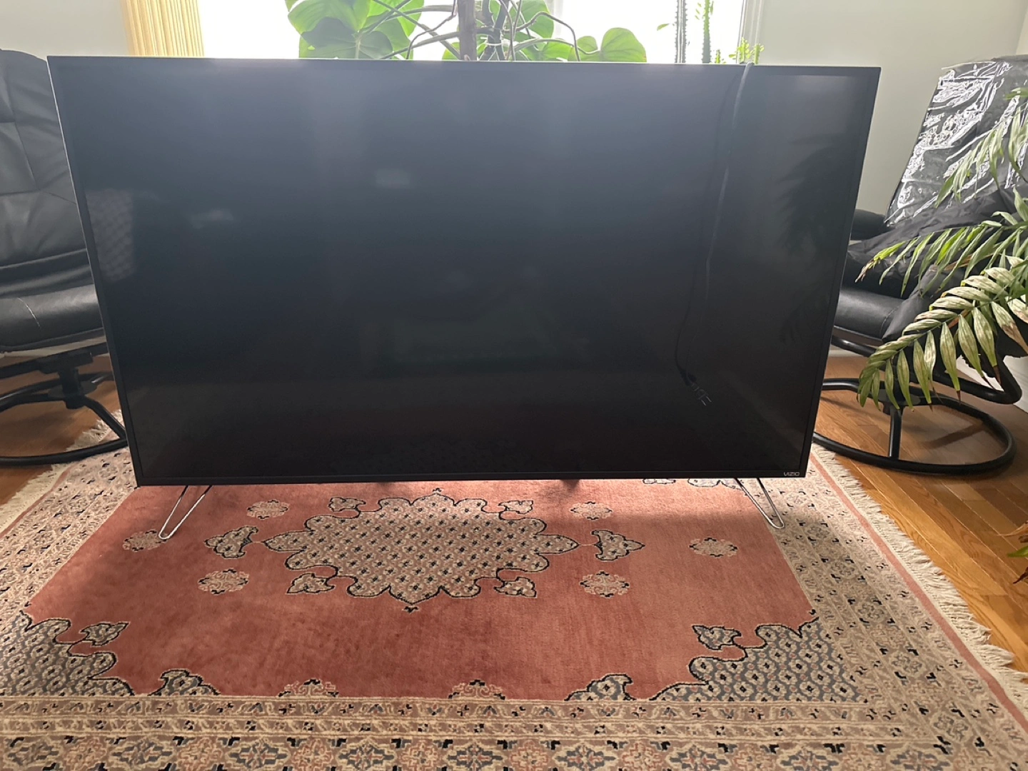 Large screen smart TV. Sleek design. Includes remote control. Excellent picture quality. Great for movies and gaming.needs a small repair!