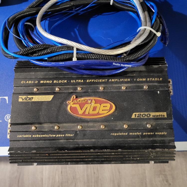 1200 watt mono block amplifier. Class-D, ultra efficient. 1 ohm stable. Variable subsonic/low pass filter. Regulated MOSFET power supply. Includes wiring.