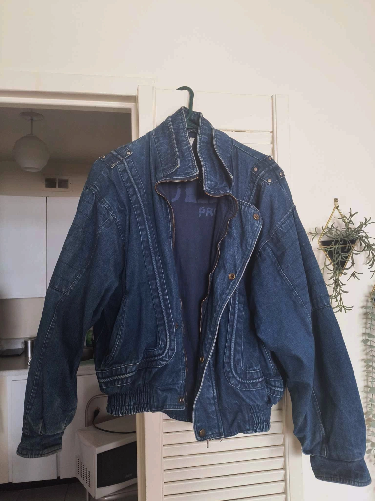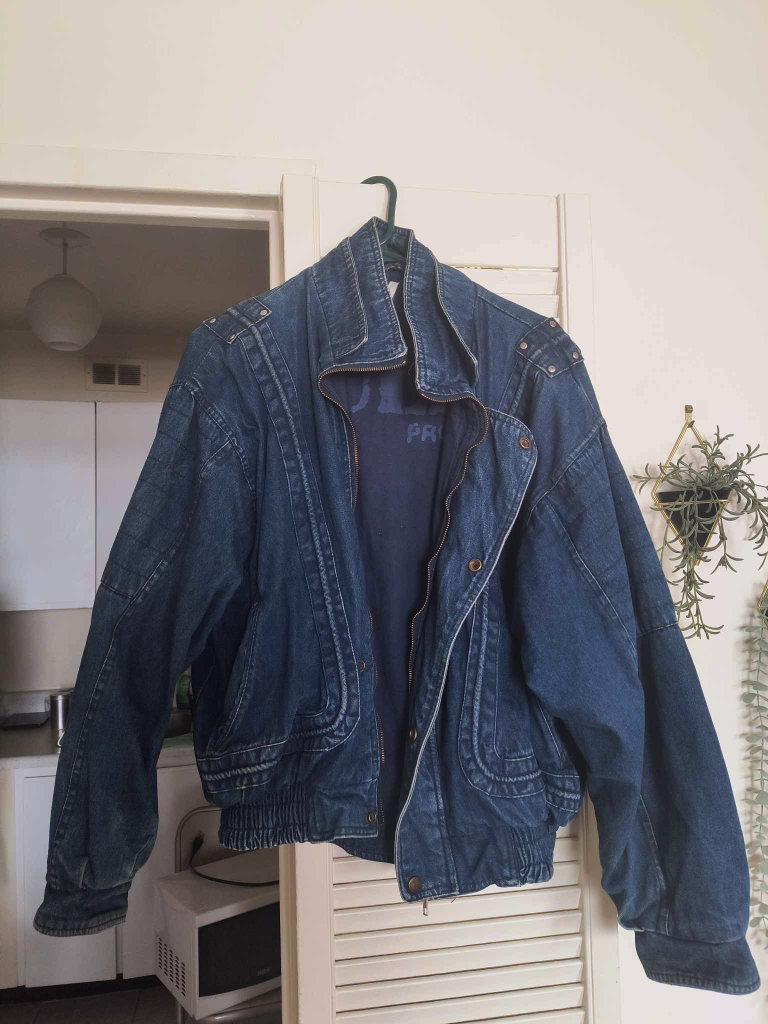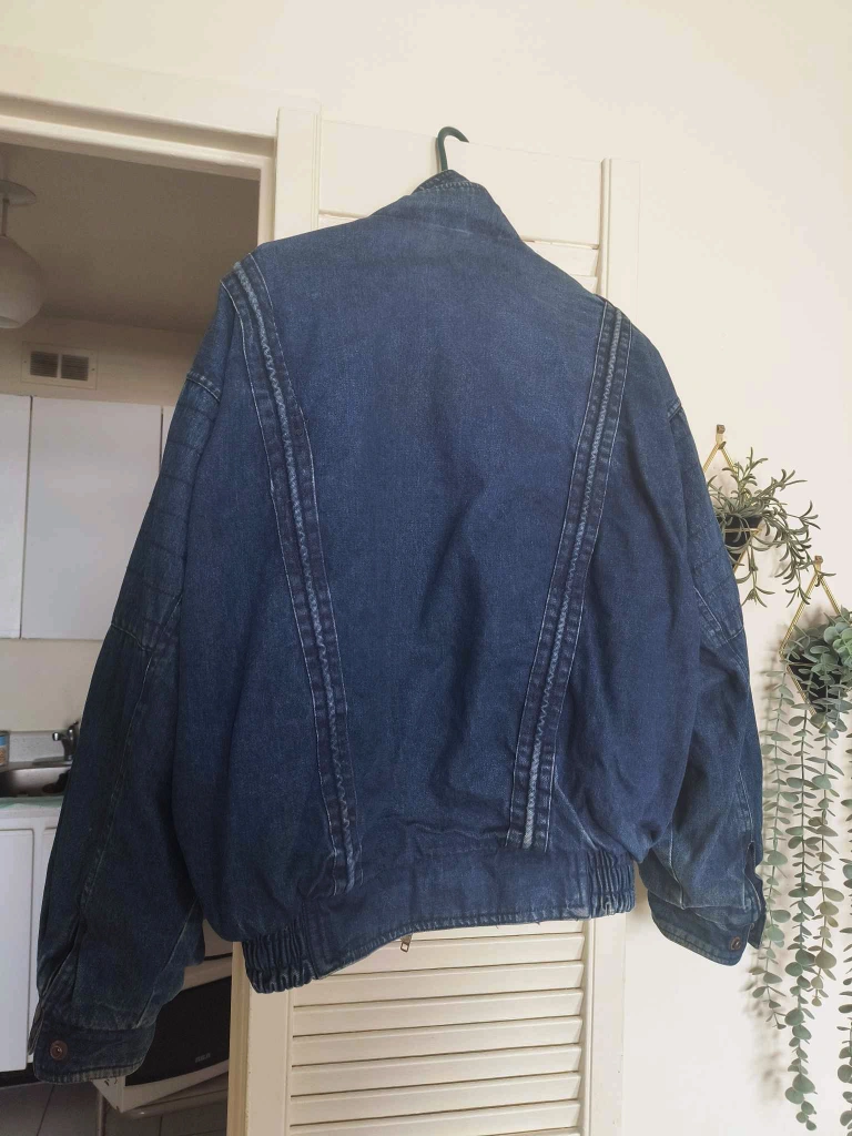 Vintage denim bomber jacket, size L. Fantastic quality, nice thick and warm jacket, not like the thin flimsy jackets around these days. Nicely lined as well.