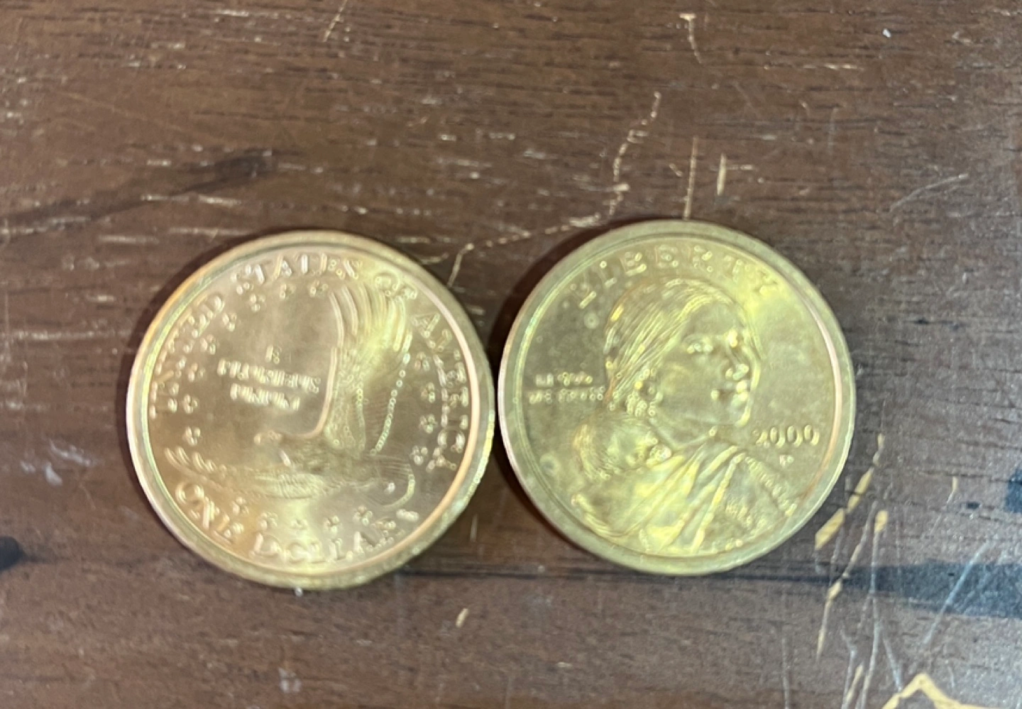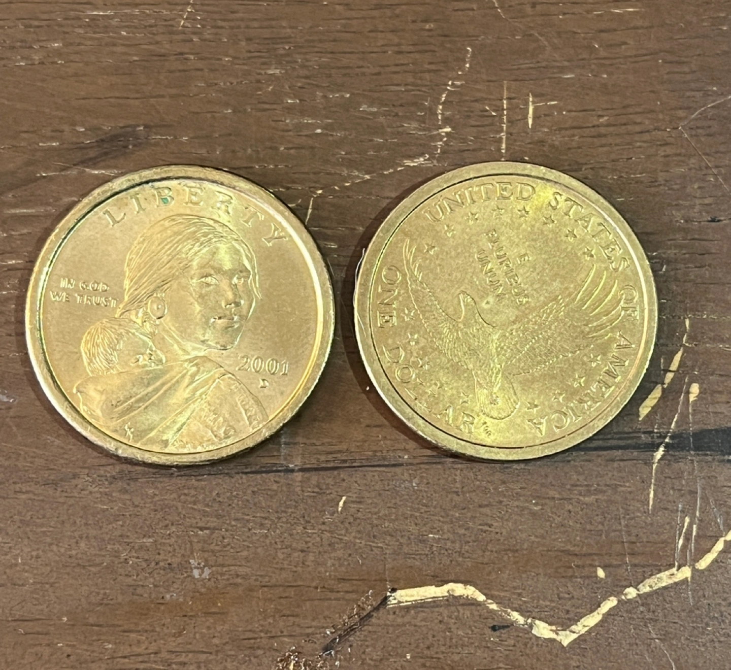 1000+Two US one dollar coins. One coin from 2000, one from 2001. Sacagawea design. Good condition. $4 EACH. $8 for both Willing to trade for Metal Collector coins. Send photo of your offered trade.