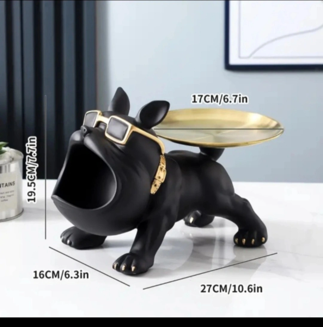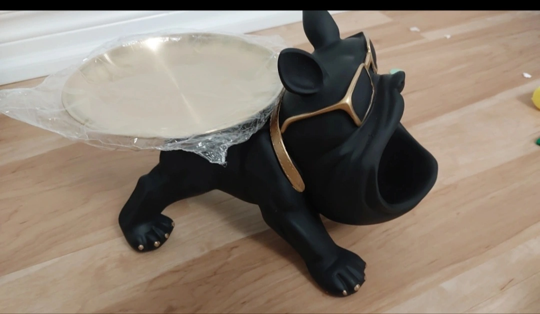 BNIB Unique black French bulldog figurine. Features gold accents and sunglasses. Includes a small tray on the back. Great for home decor.