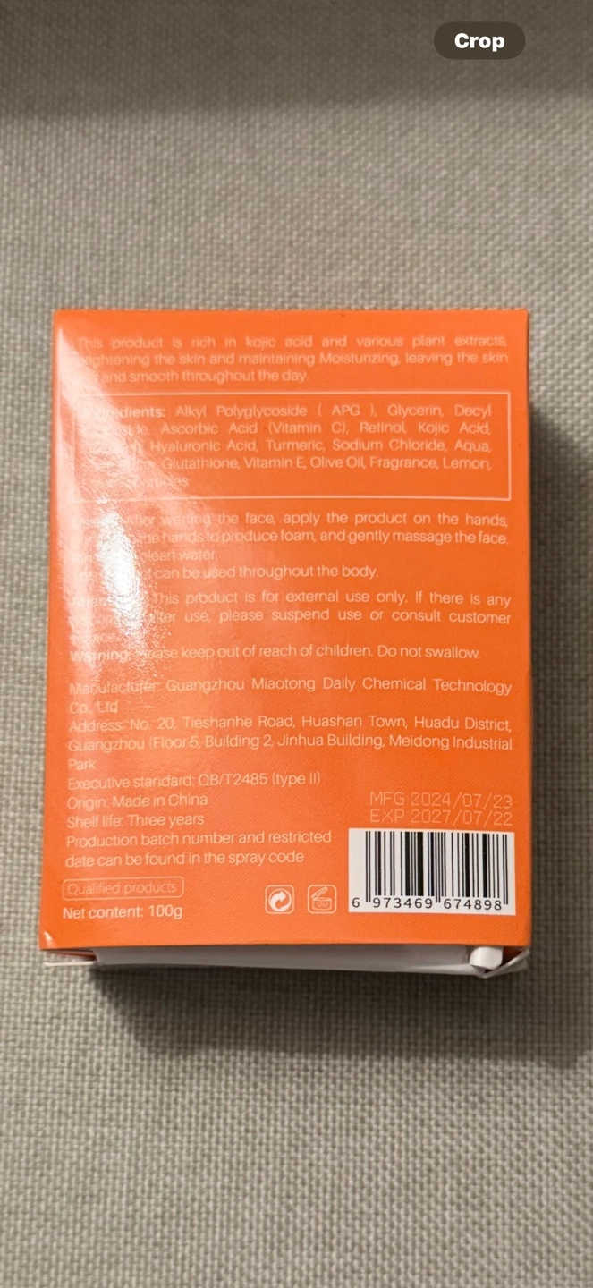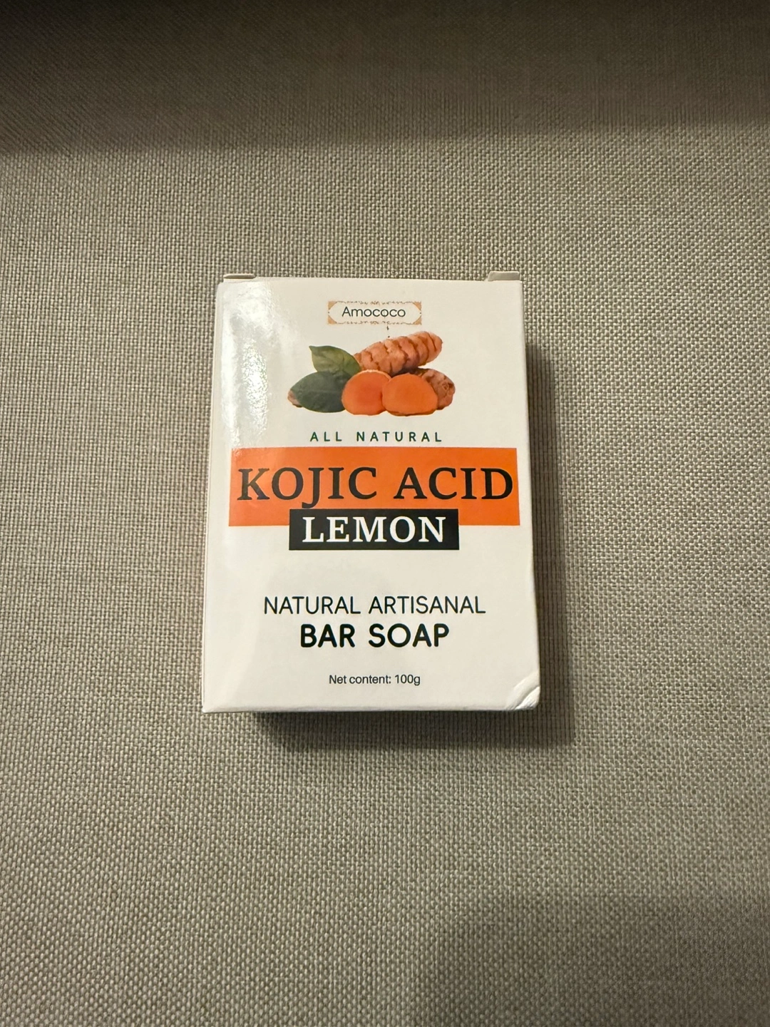 All-natural bar soap. Kojic acid and lemon. Net content: 100g. New, unopened box.
