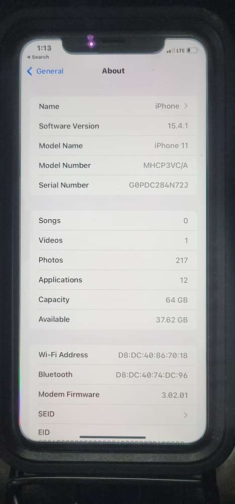 Black iPhone 11 with Otter box Phone Case