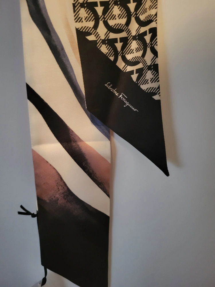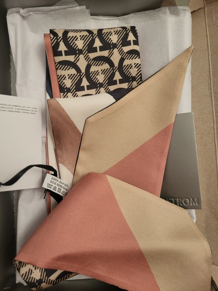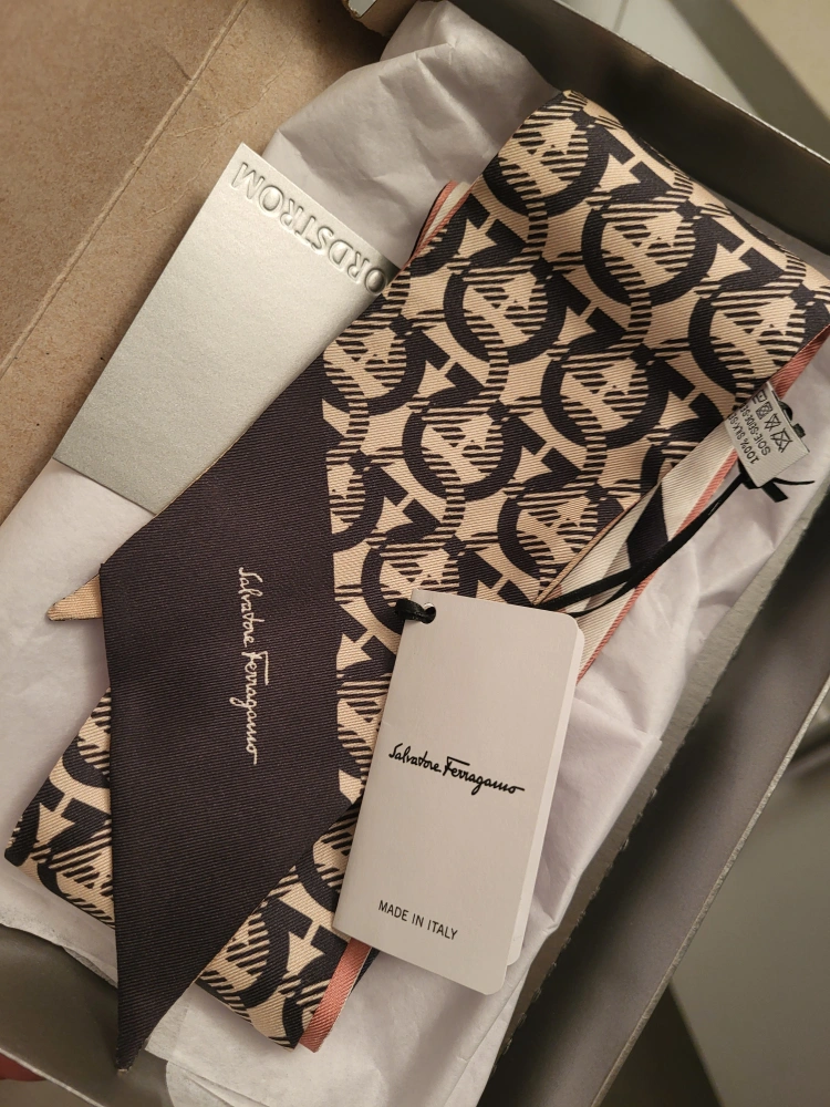 Salvatore Ferragamo 100% silk scarf. Ferragamo logo pattern. Made in Italy. Brand new with tags and in original Nordstrom box. Ferragamo twillys retails for $280 before tax on their website.