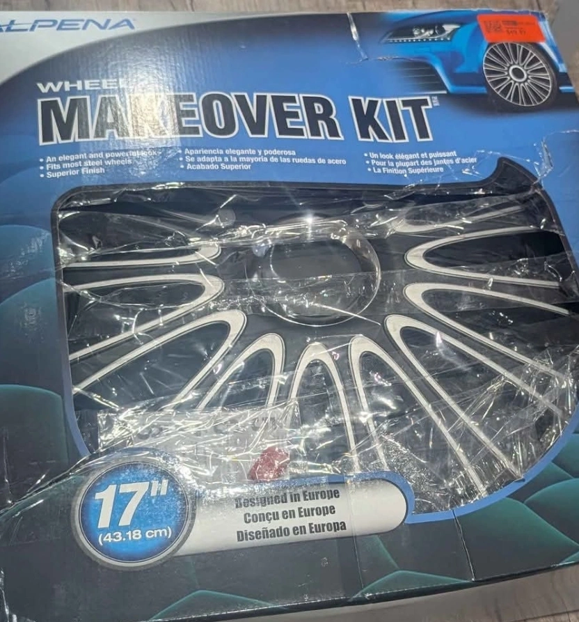 10New in box. 17 inch (43.18 cm) wheel covers. Elegant and powerful look. Fits most steel wheels. Superior finish. Designed in Europe.