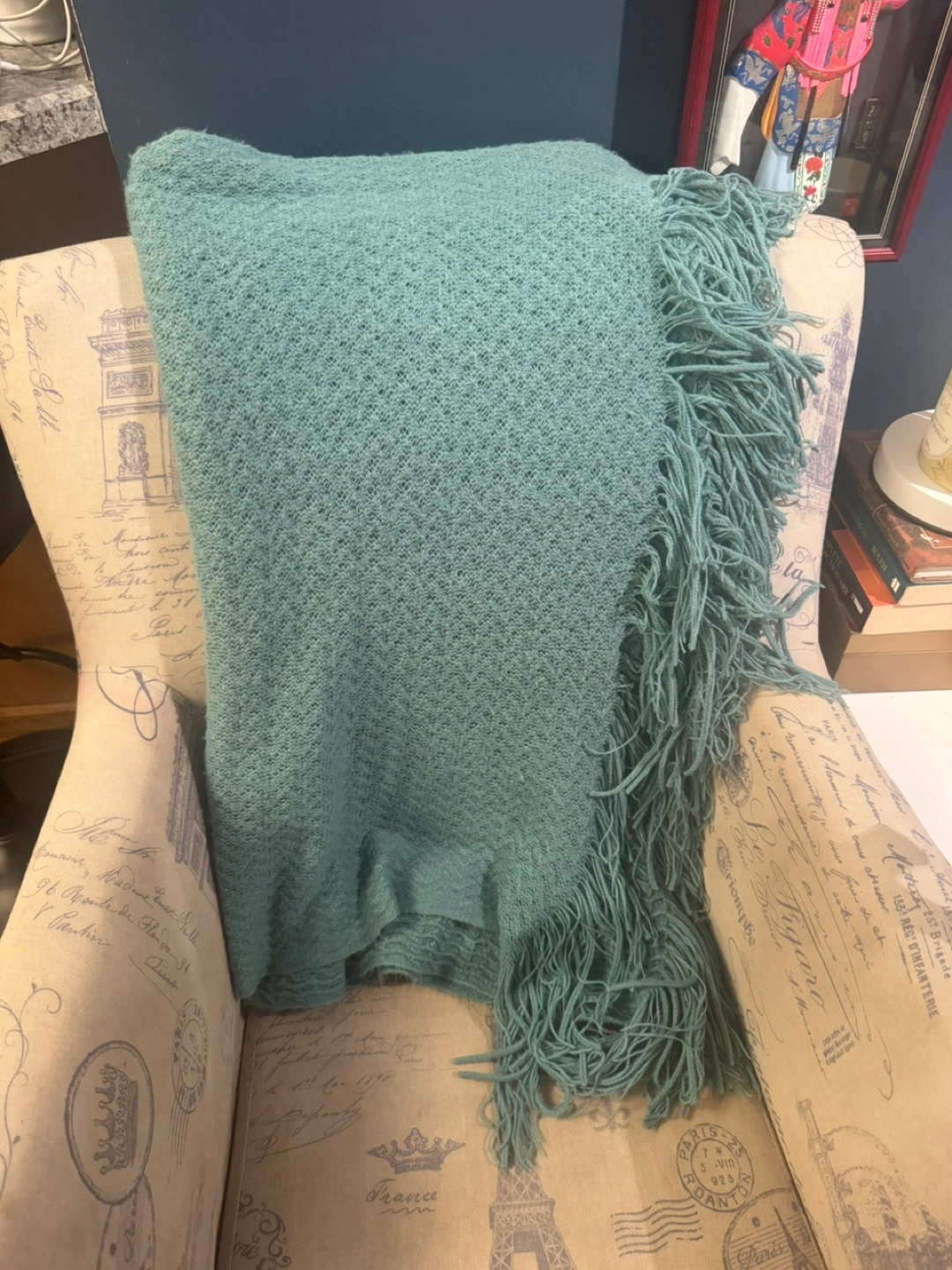 Teal Knit Throw Blanket #winterdeclutterchallenge
