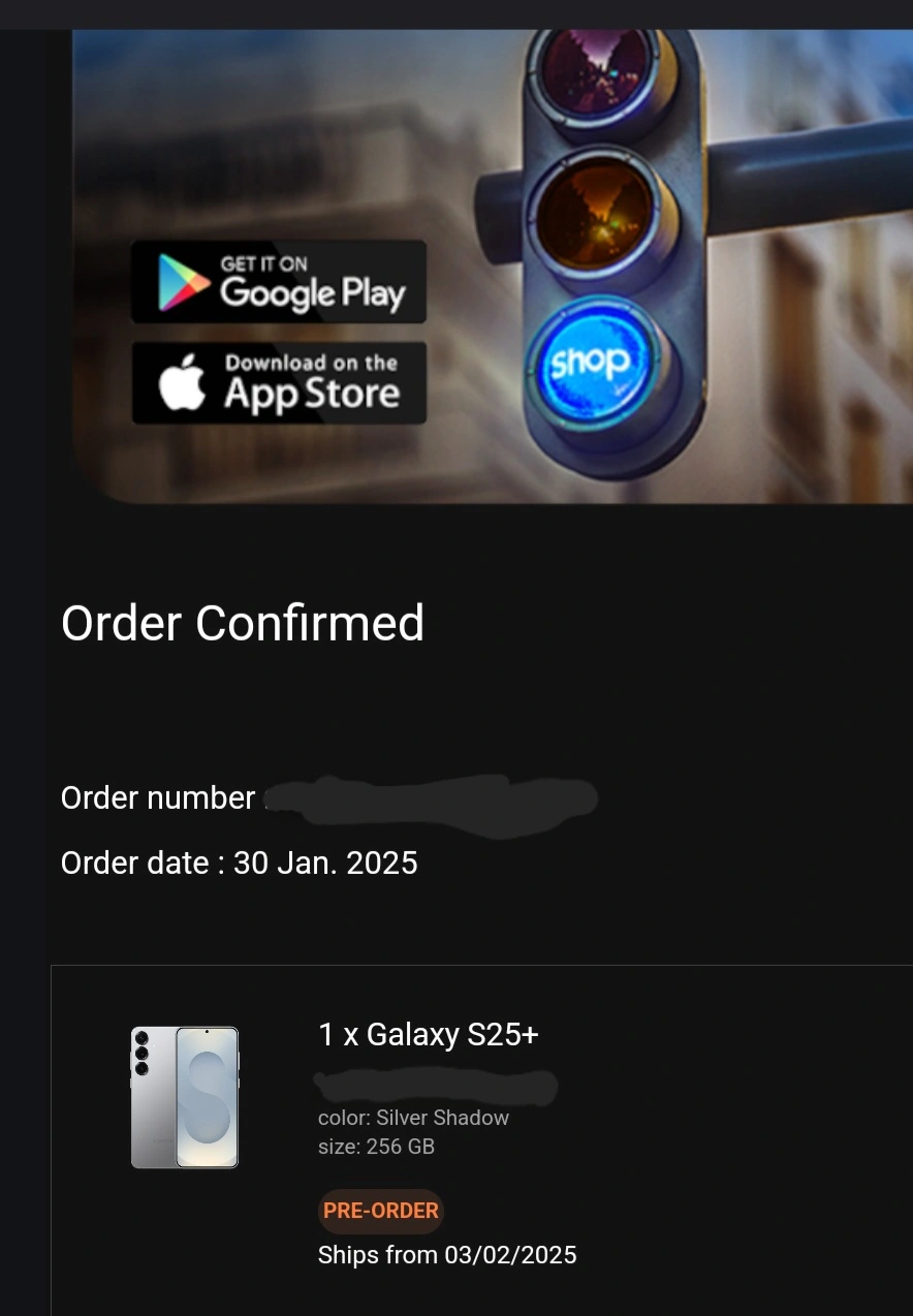 Brand new, Samsung Galaxy S25+ smartphone. Silver Shadow colour. 256 GB storage. Pre-order. Ships from 03/02/2025. Cash only Pickup