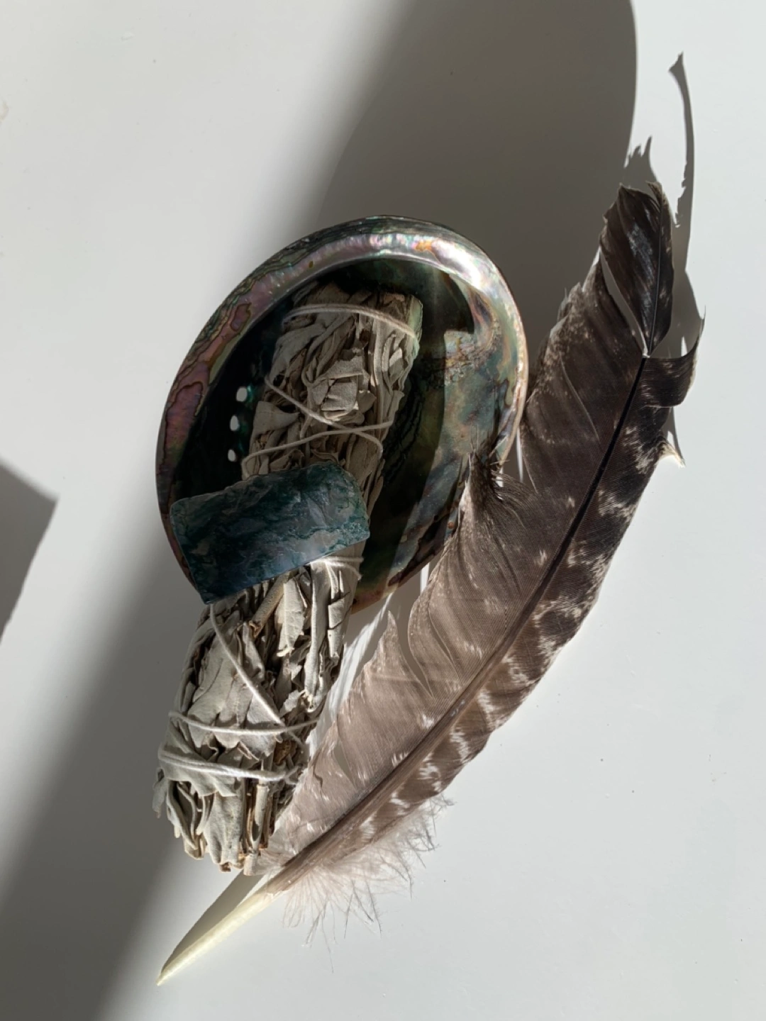 Smudging Kit: White Sage Bundle, Abolone Shell, and Feather