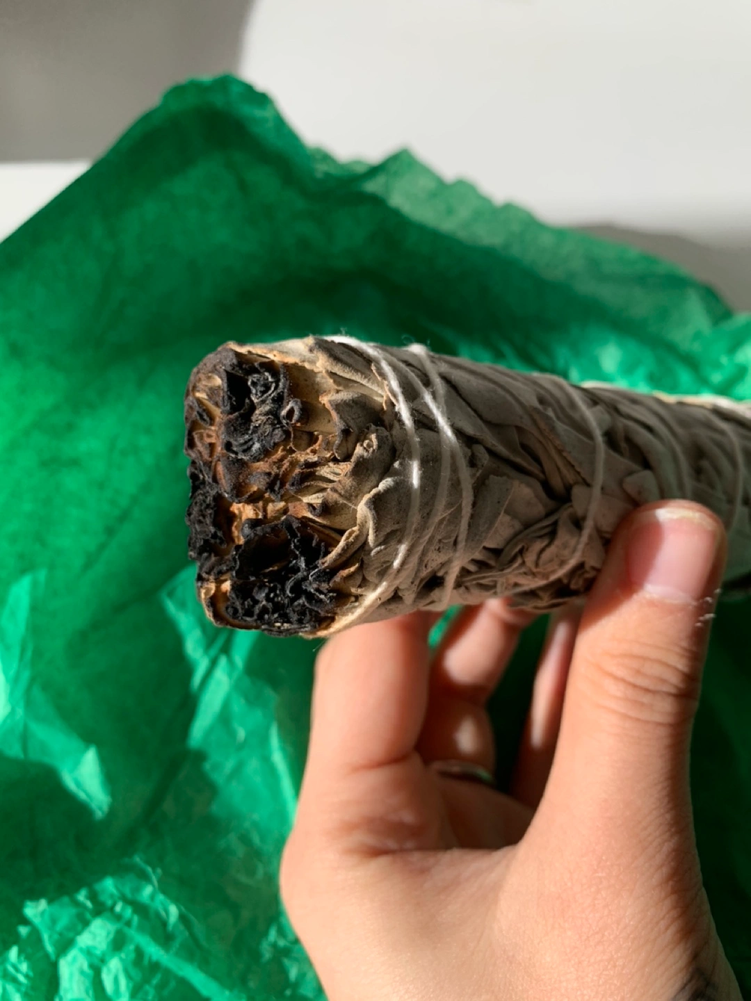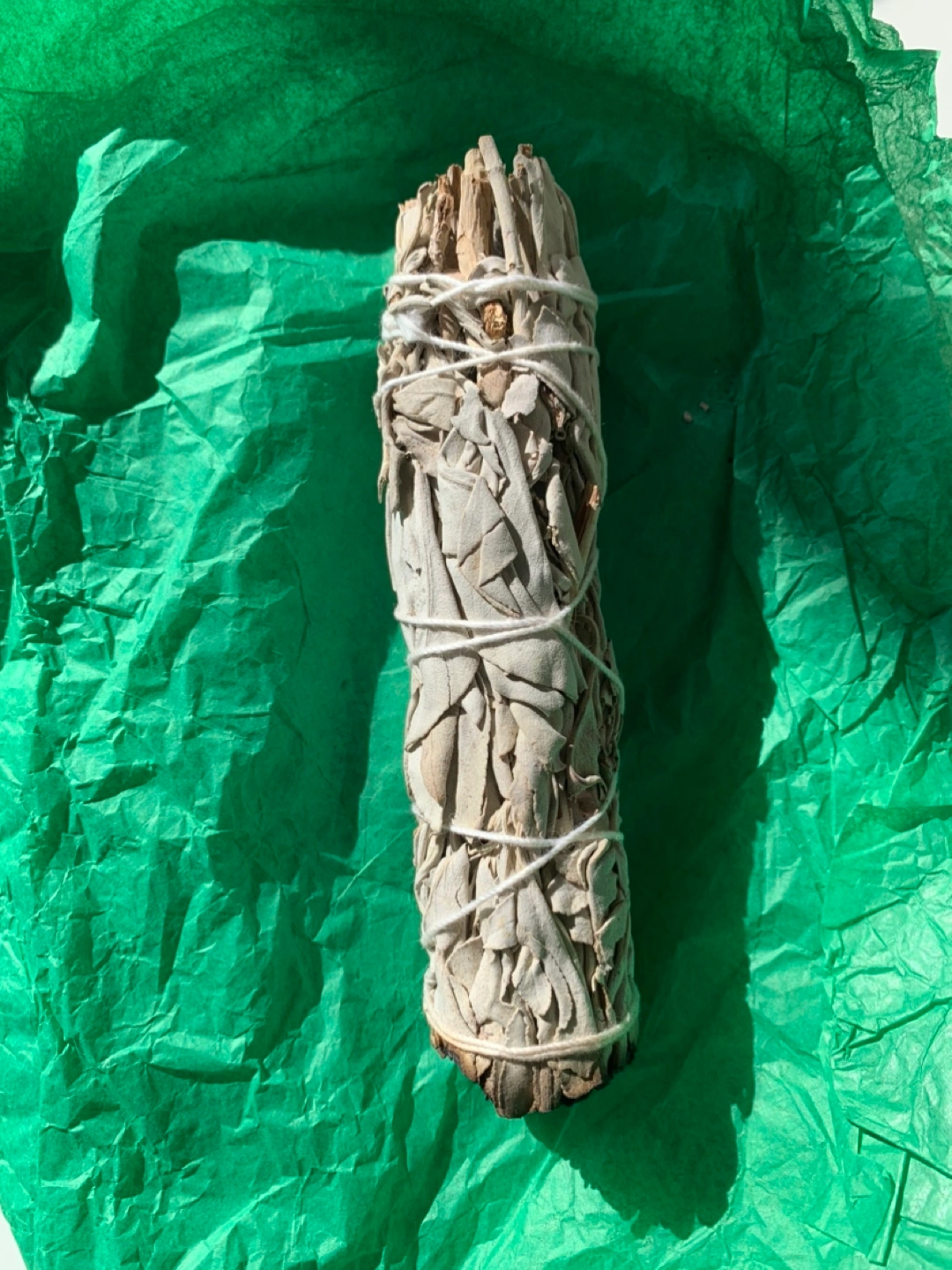 Smudging kit includes one white sage bundle, one abalone shell, and one feather, one stone. Sage bundle partially used. Perfect for cleansing rituals.