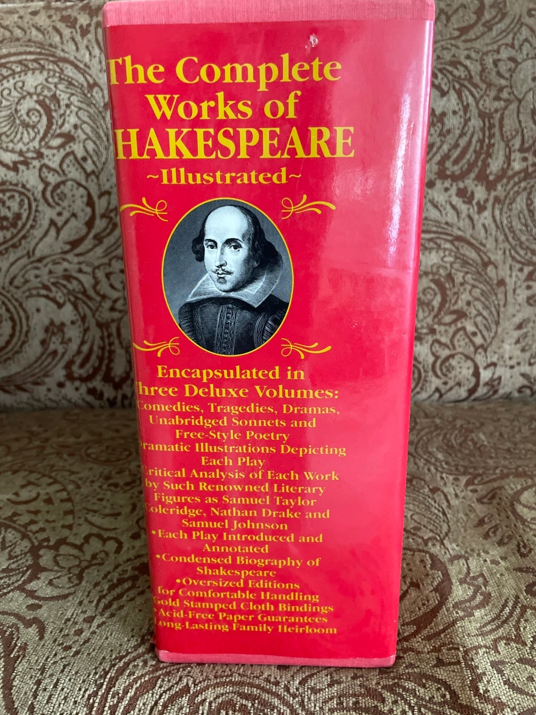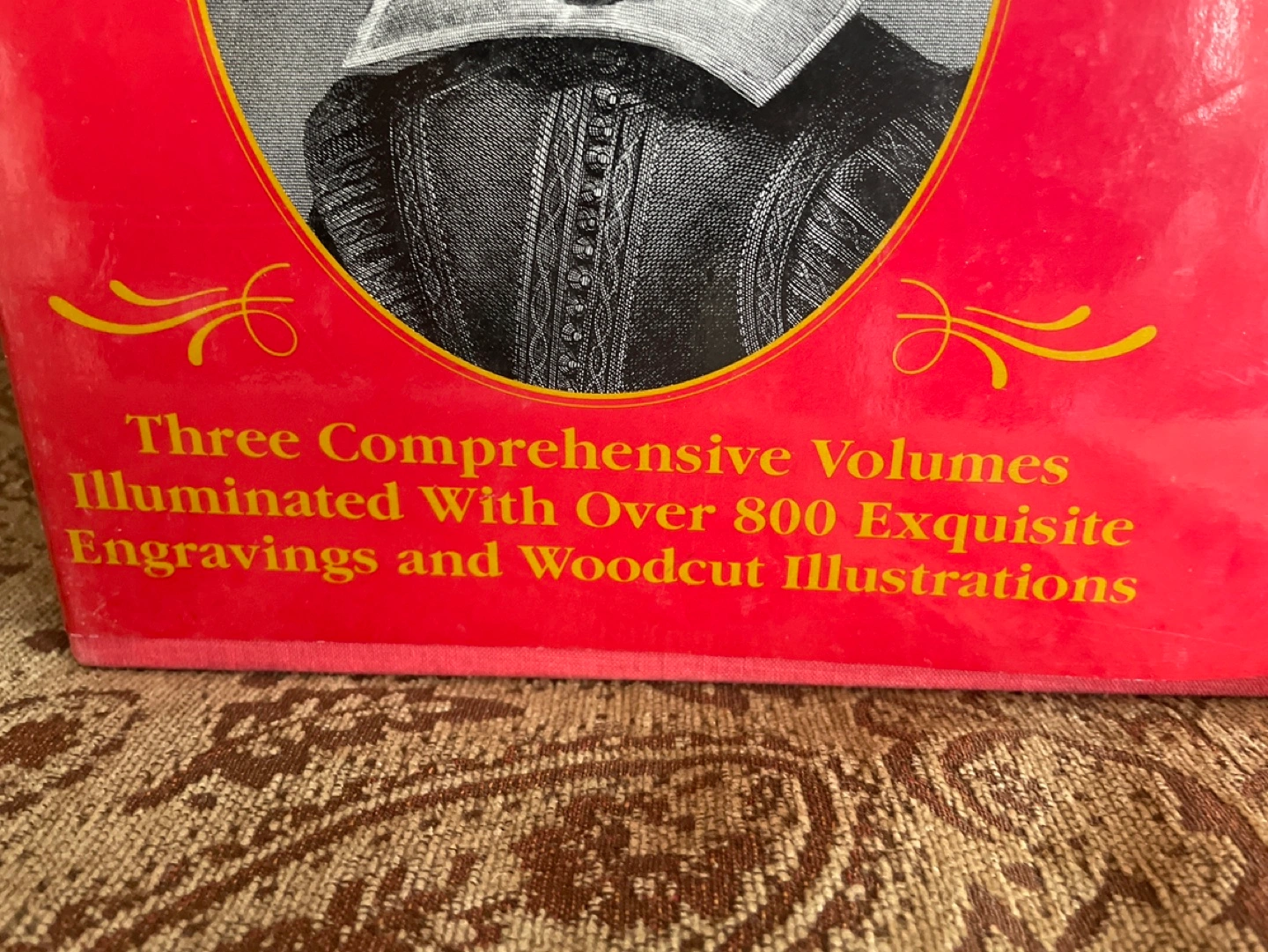 65Three volume set. Complete works of Shakespeare. Illustrated with over 800 exquisite engravings and woodcut illustrations. Includes comedies, tragedies, dramas, and sonnets. Critical analysis of each work by renowned literary figures. Condensed biography of Shakespeare included. Acid-free paper. Pick up in Scarborough Midland and Eglinton THIS SET IS LARGER THAN NIRMAL AMD IN ITS OWN CASE. Measures: 12” x 10” x 5”