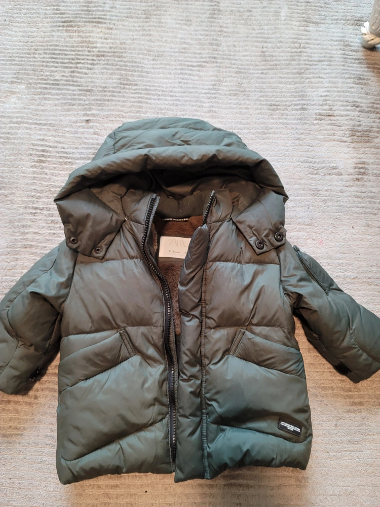 Zara Kids Olive Green Puffer Jacket Size 6-12 Months