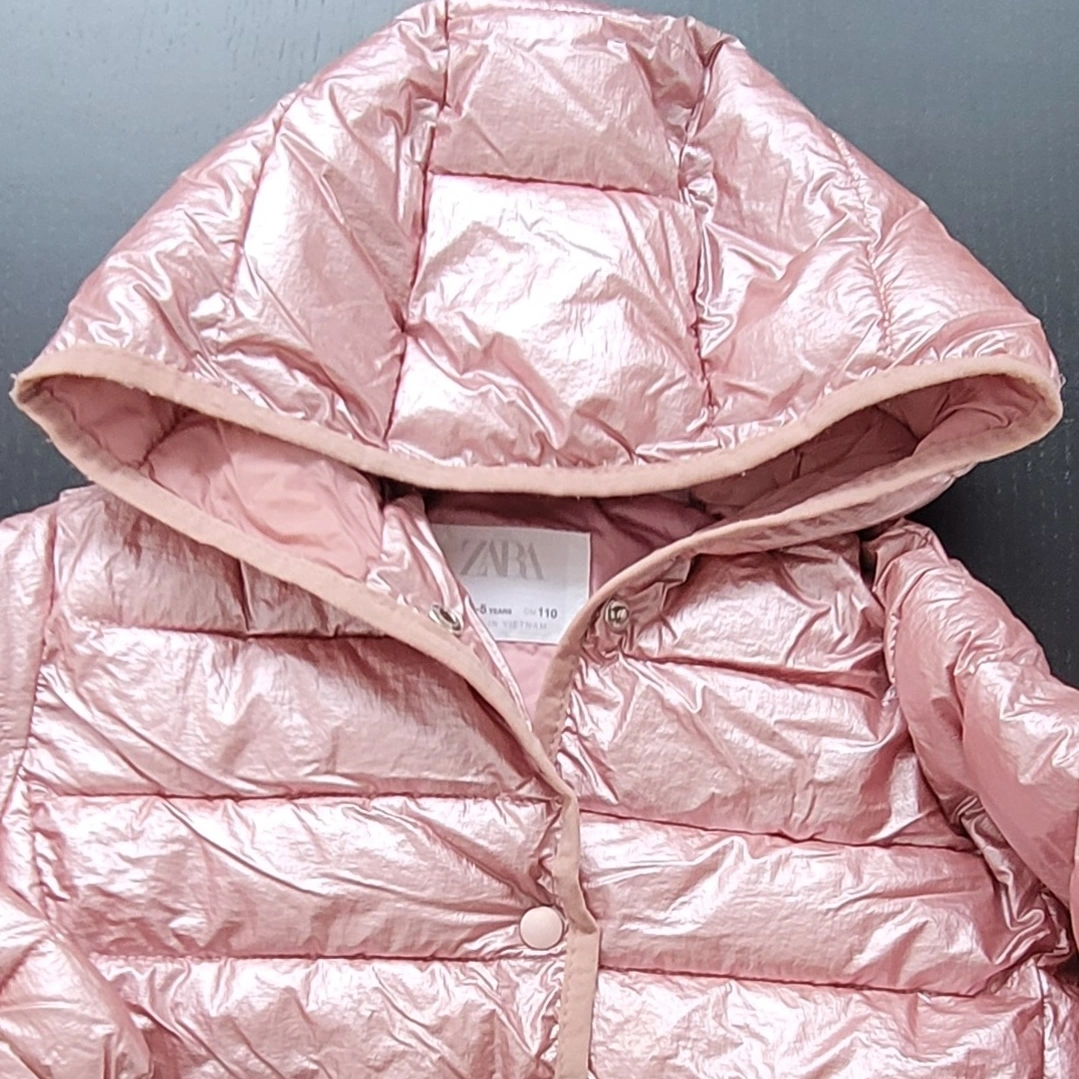 Rose Gold Zara Kids Puffer Jacket - Size 4-5 Years