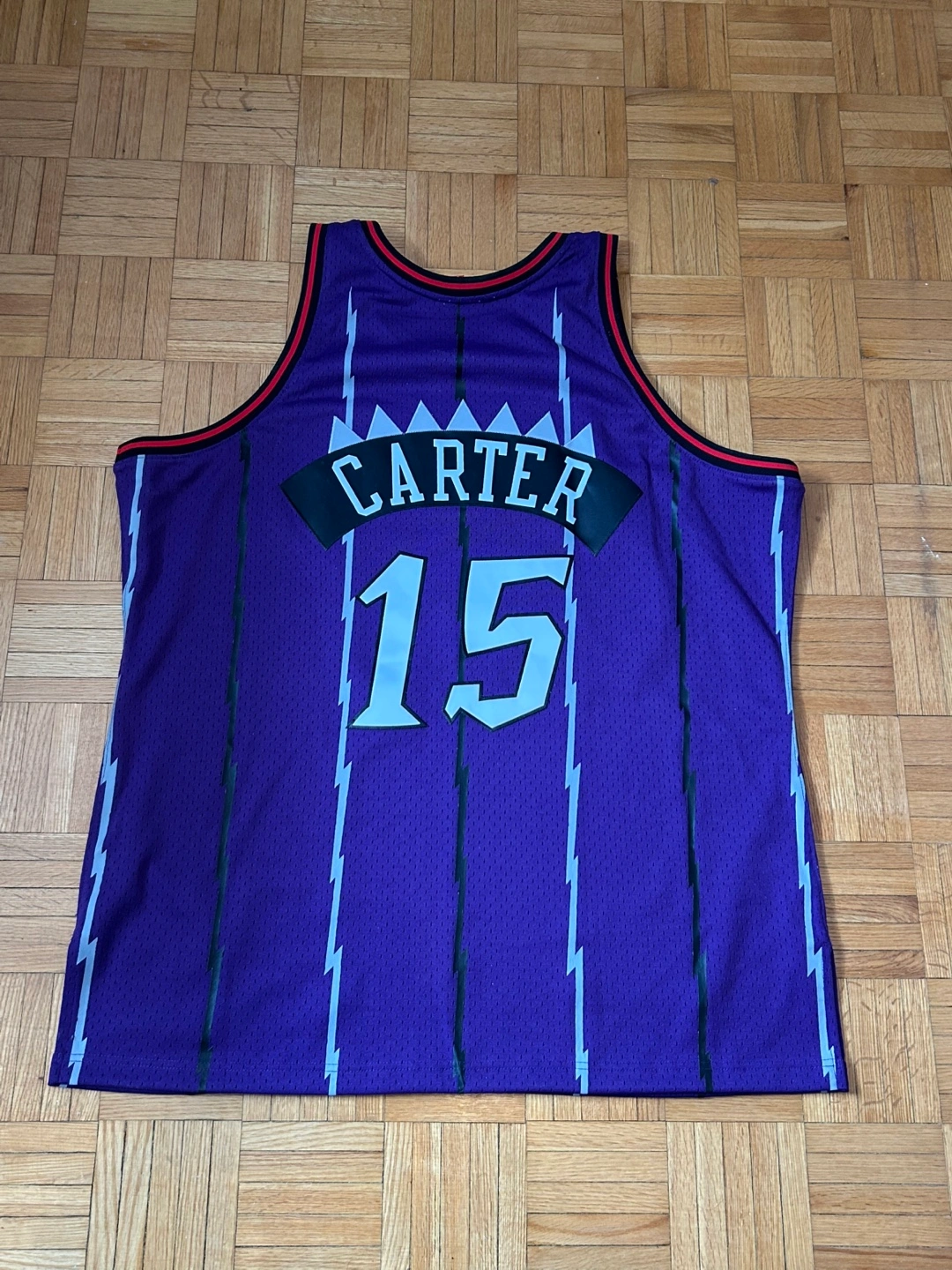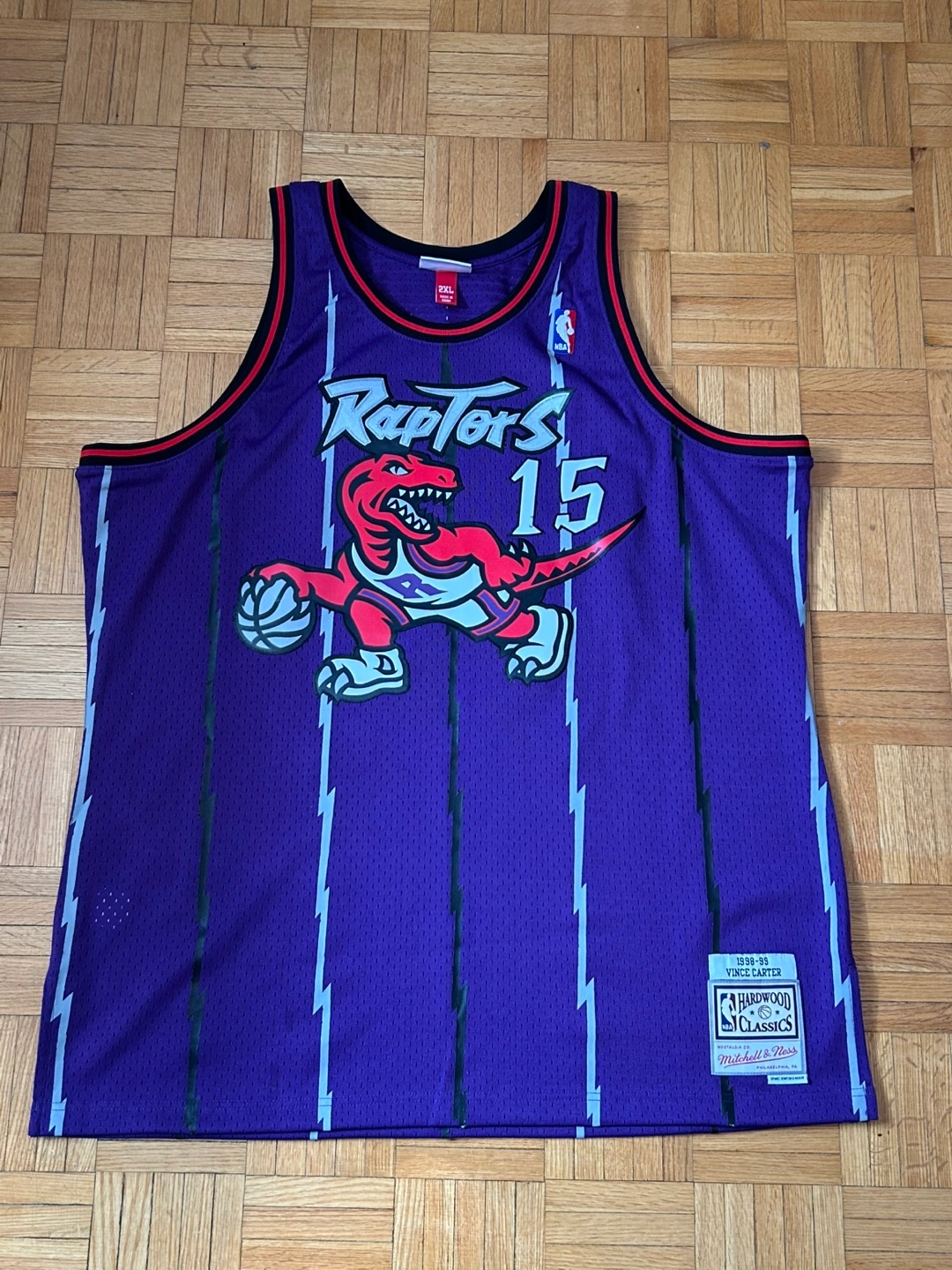 Brand new unworn Mitchell &ness 1998-99 Toronto Raptors Vince Carter Swingman jersey. Purple with lightning bolt accents. Size 2xl bought for $169 plus tax from sportschek will consider offers but already a big discount as it’s never been worn since new. It’s 67 cm or 26inches armpit to armpit.