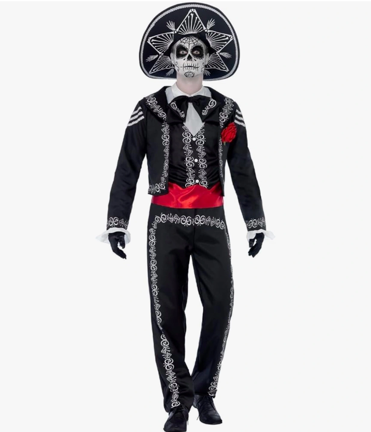 Smiffys Day of the Dead Senor Bones Costume Worn once - in excellent near new condition Size L Day of the Dead Senor Bones Costume, Black, with Jacket, Trousers, Mock Shirt & Hat