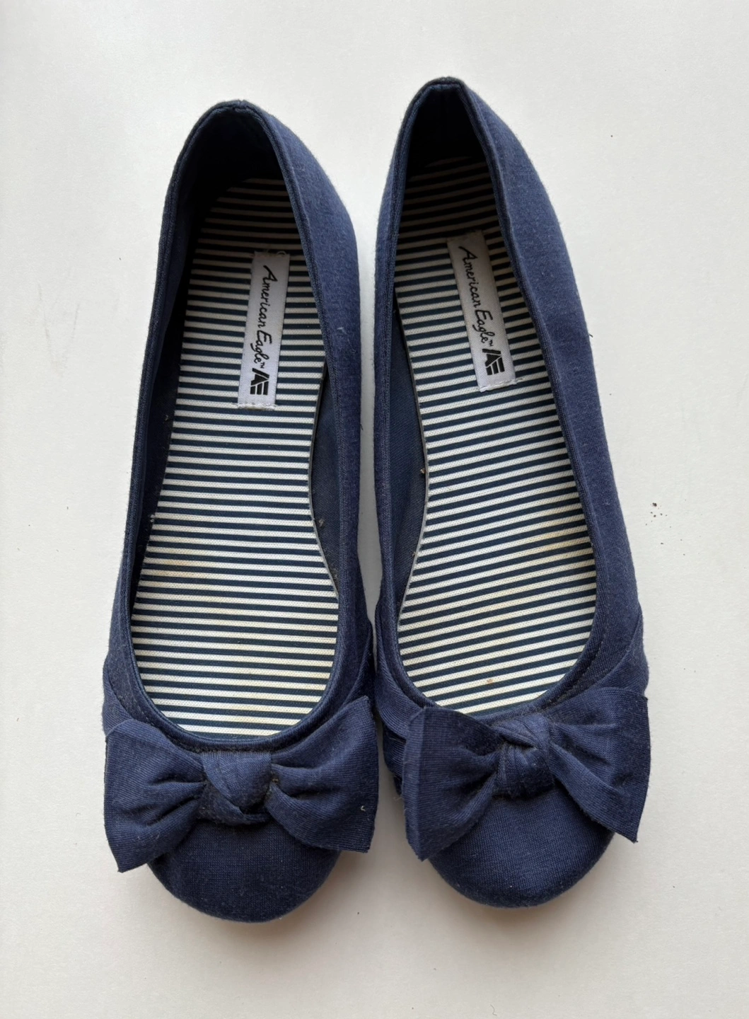 American Eagle Women's Navy Blue Bow Flats - Size 7 1/2