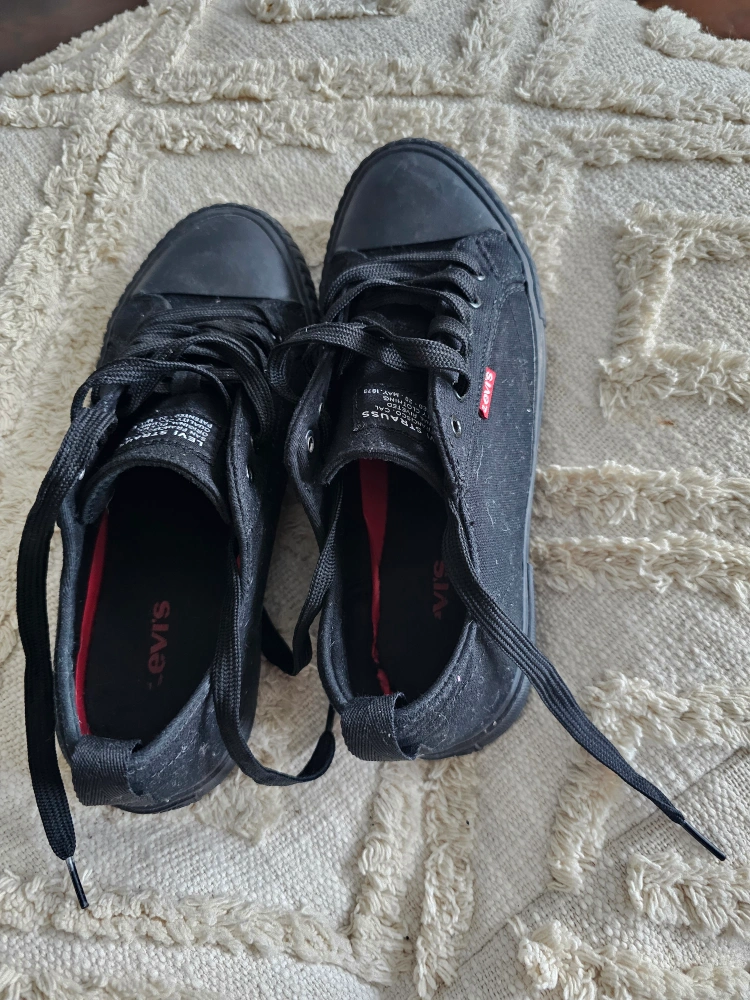 272Pair of black canvas Levi's sneakers. Low-top style. Lace-up closure. Good condition. worn once.