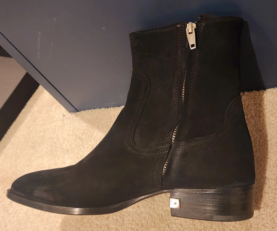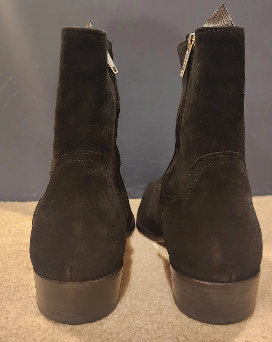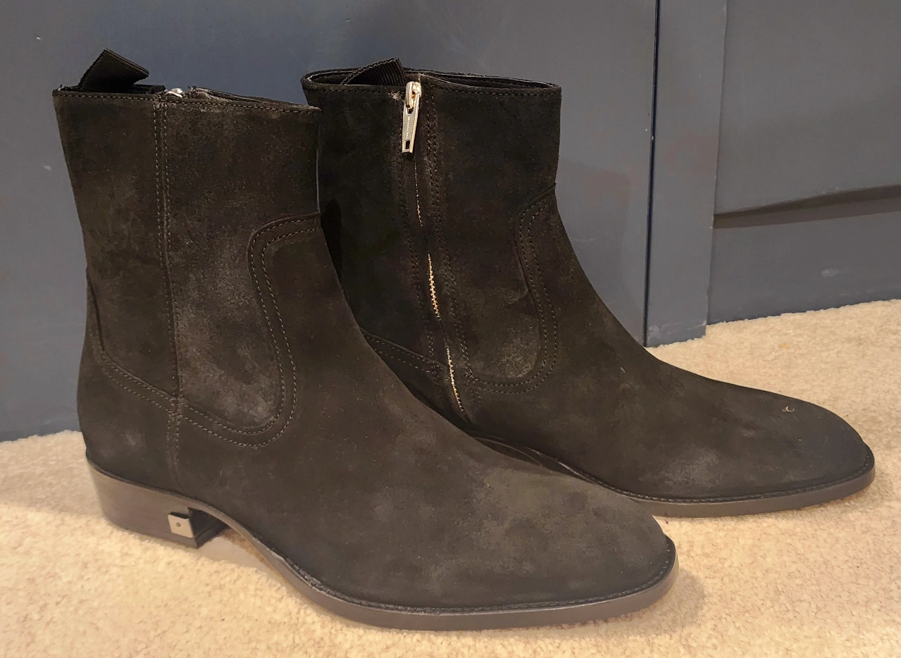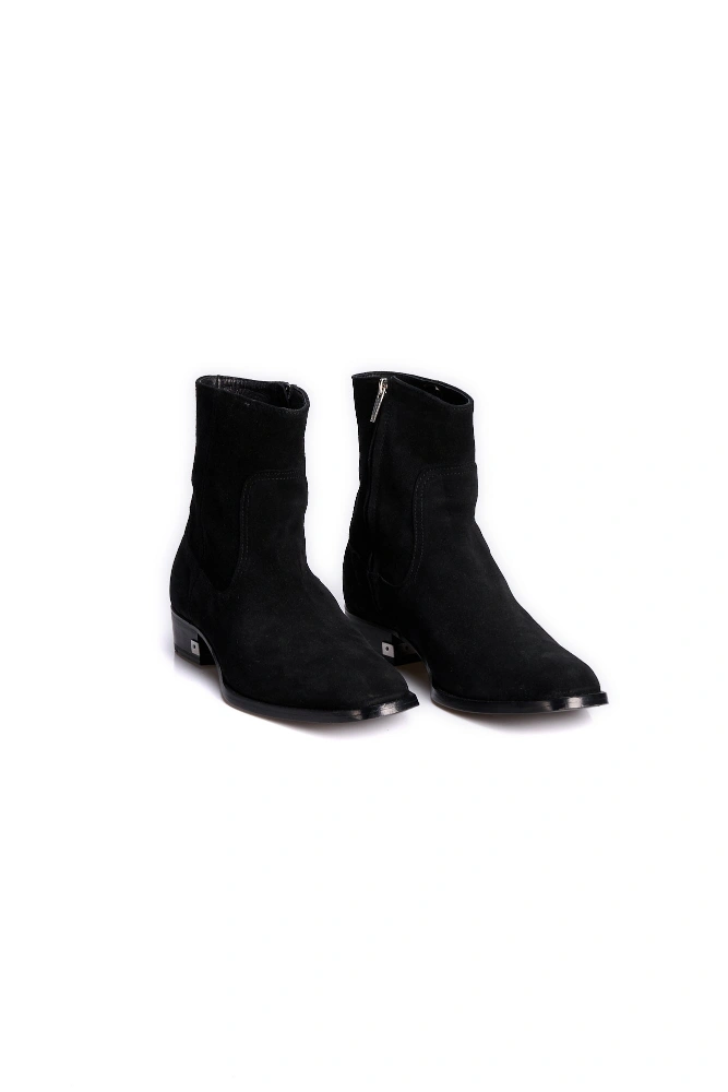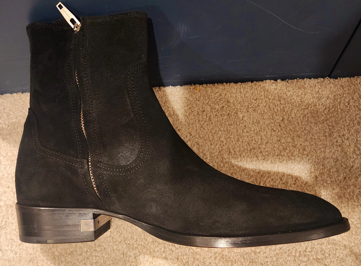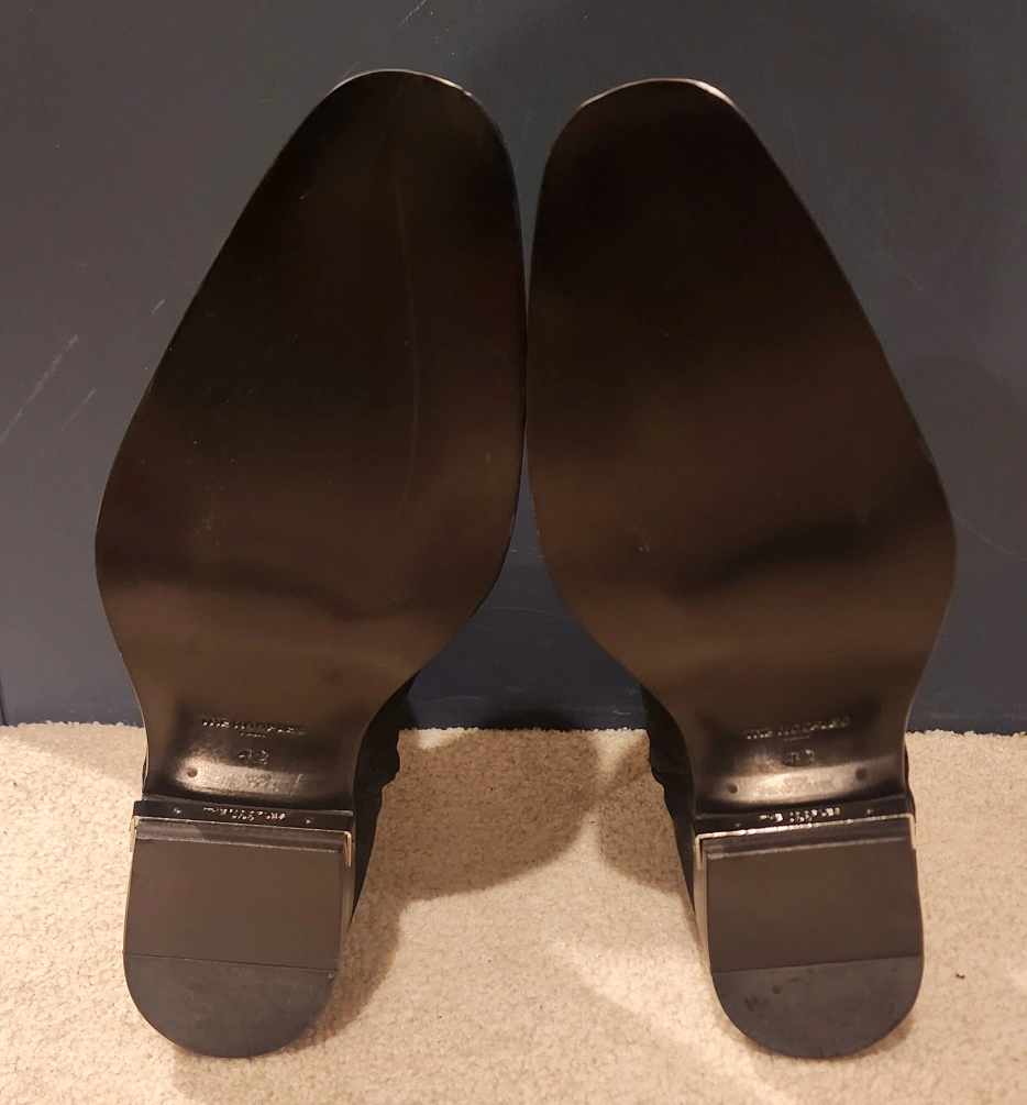 Brand new With these black suede heeled boots from the new collection, The Kooples confirms its rock signature. In a fluffy cowhide leather, they are lined with a supple and sophisticated leather. A side zip and a logo bar, subtly affixed to the heel, add the signature touch of the House. A sober color gives these high ankle boots for men a winter look. Versatile but unique, they will give your faded or skinny jeans a rock and elegant side.