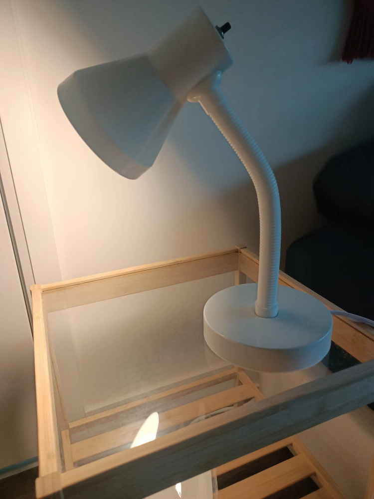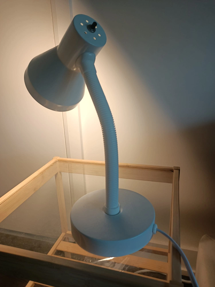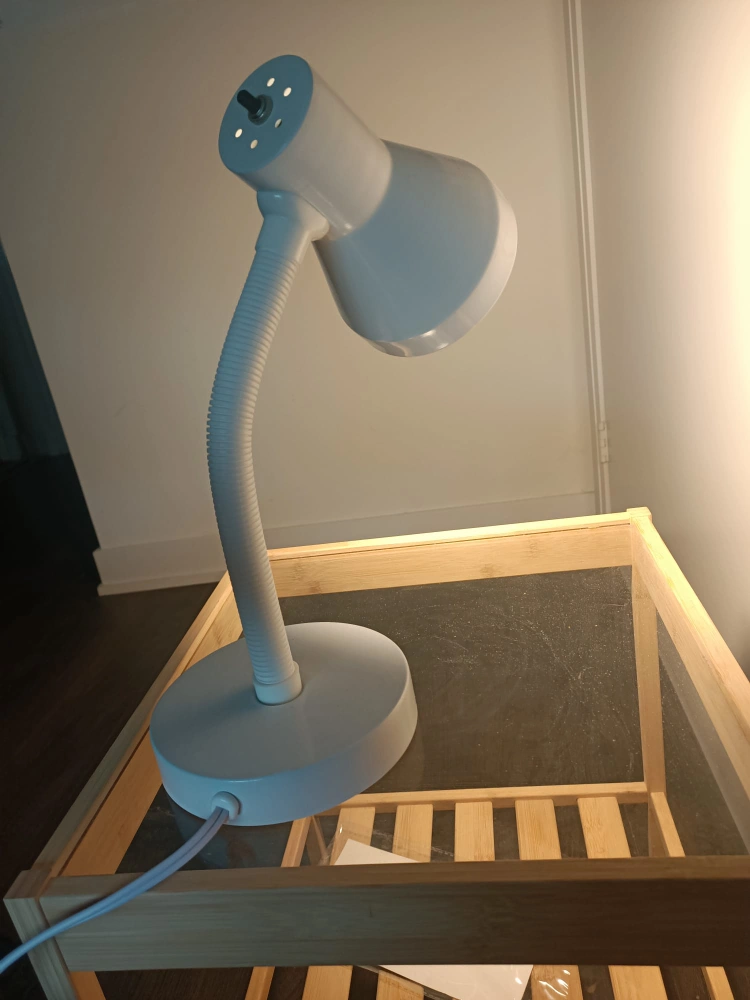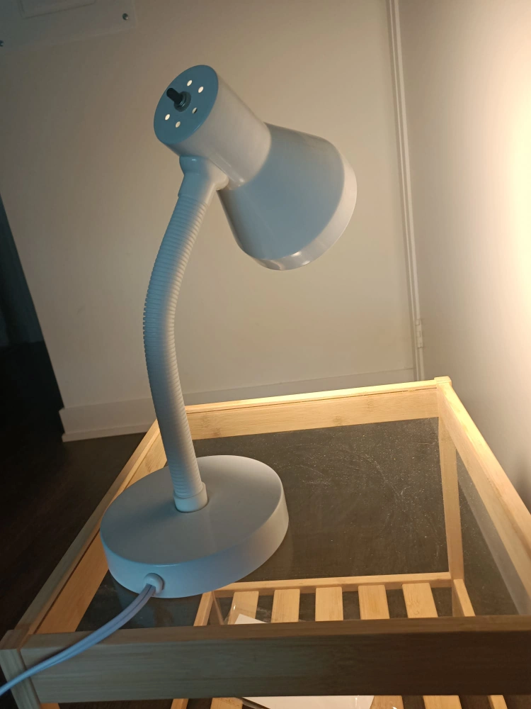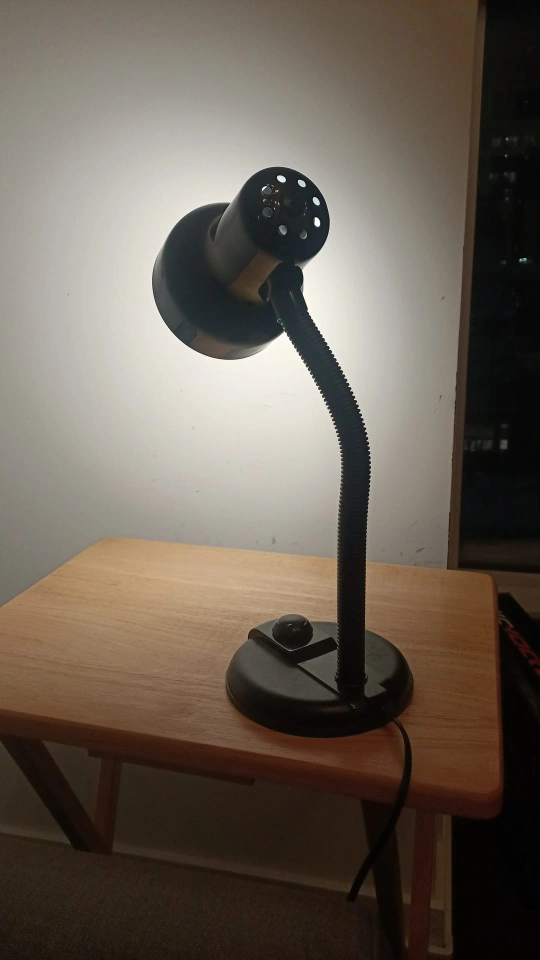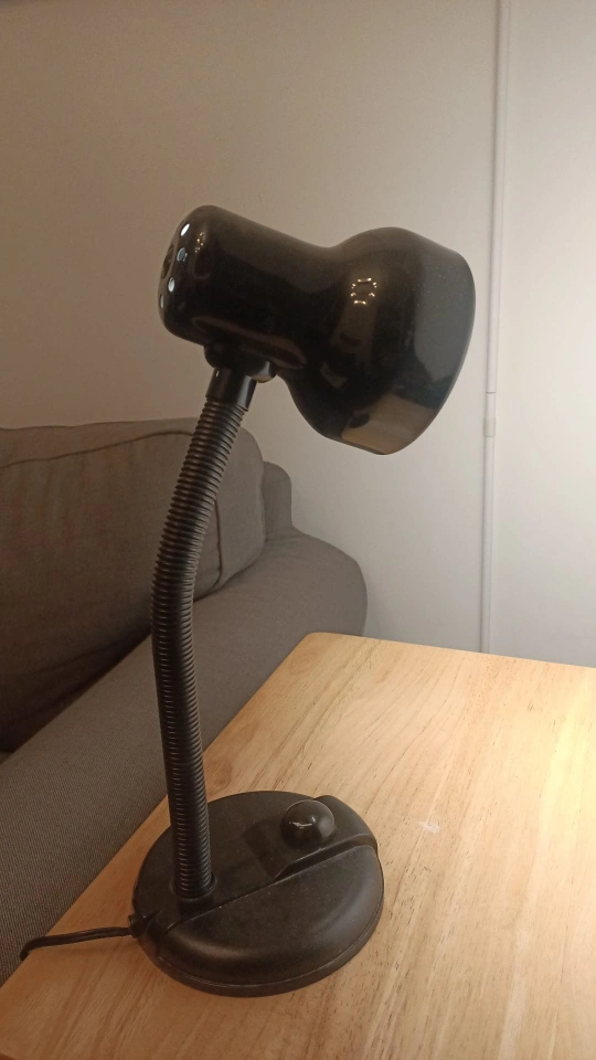 Two adjustable desk lamps. One black, one white. Flexible gooseneck design. Simple on/off switch. Great for studying or reading. $10 each