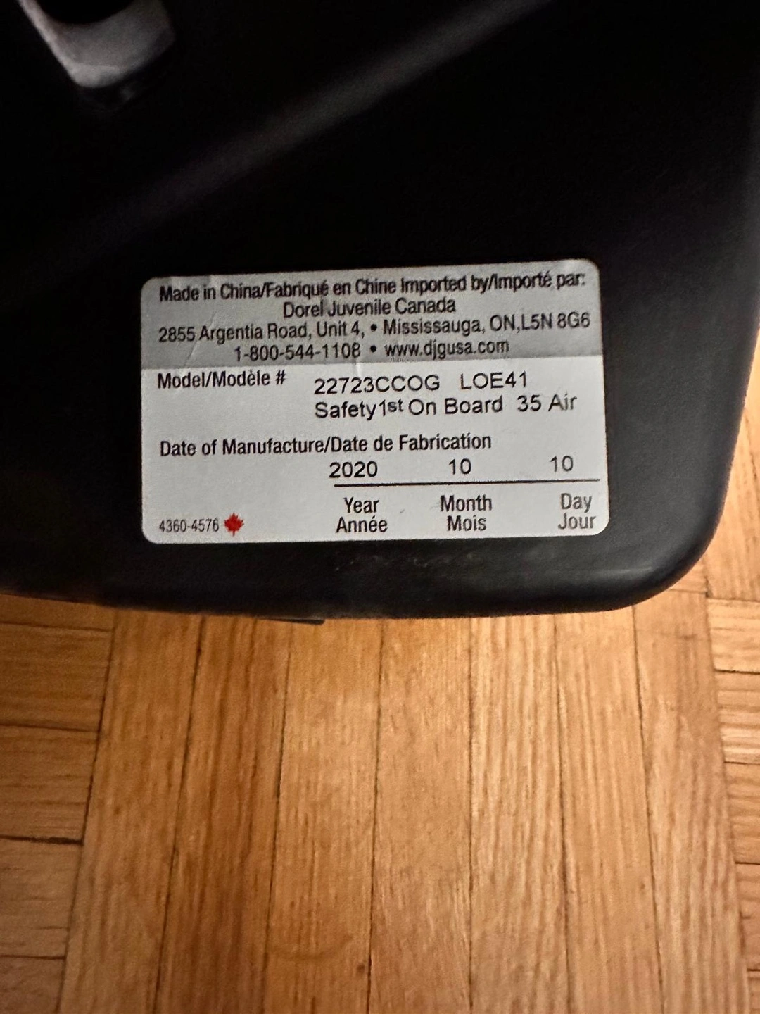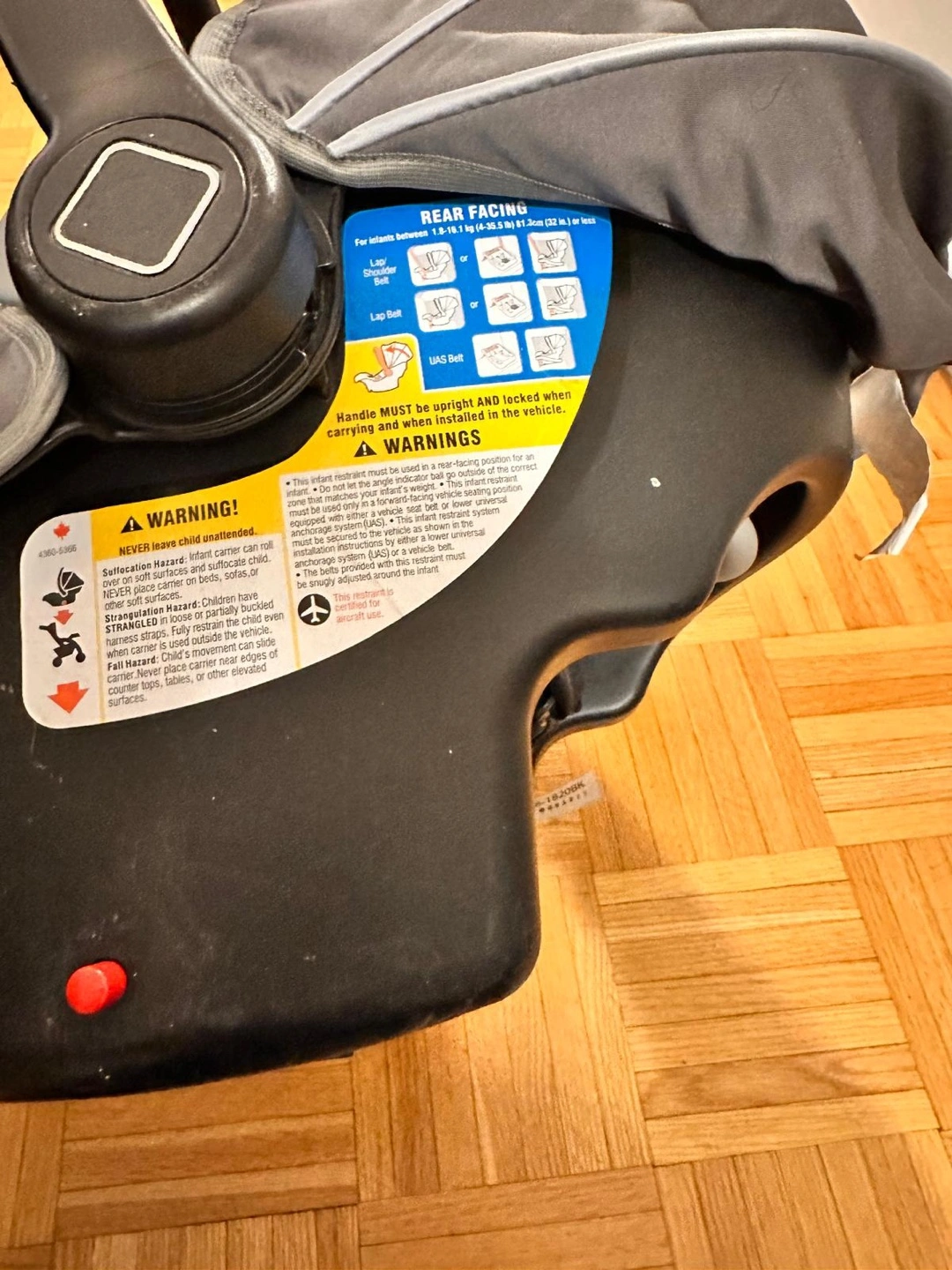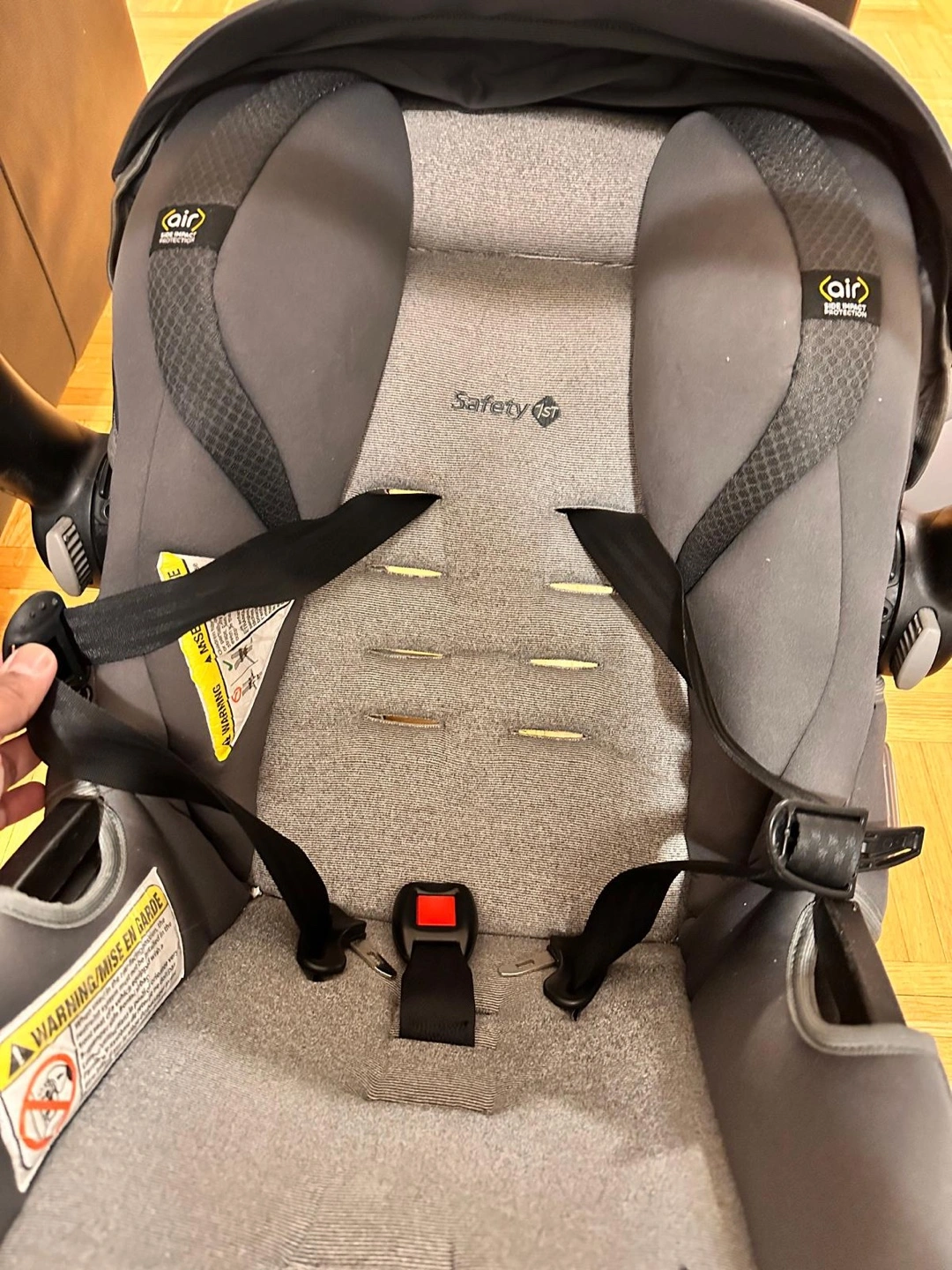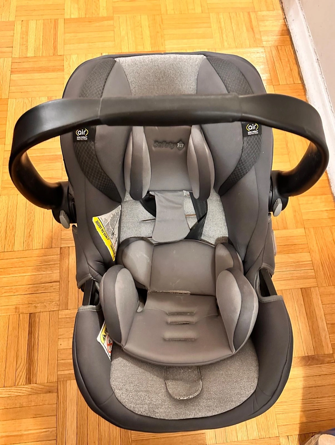 Infant car seat, grey fabric. Air Protect technology. Rear-facing. Includes Base. Used condition.