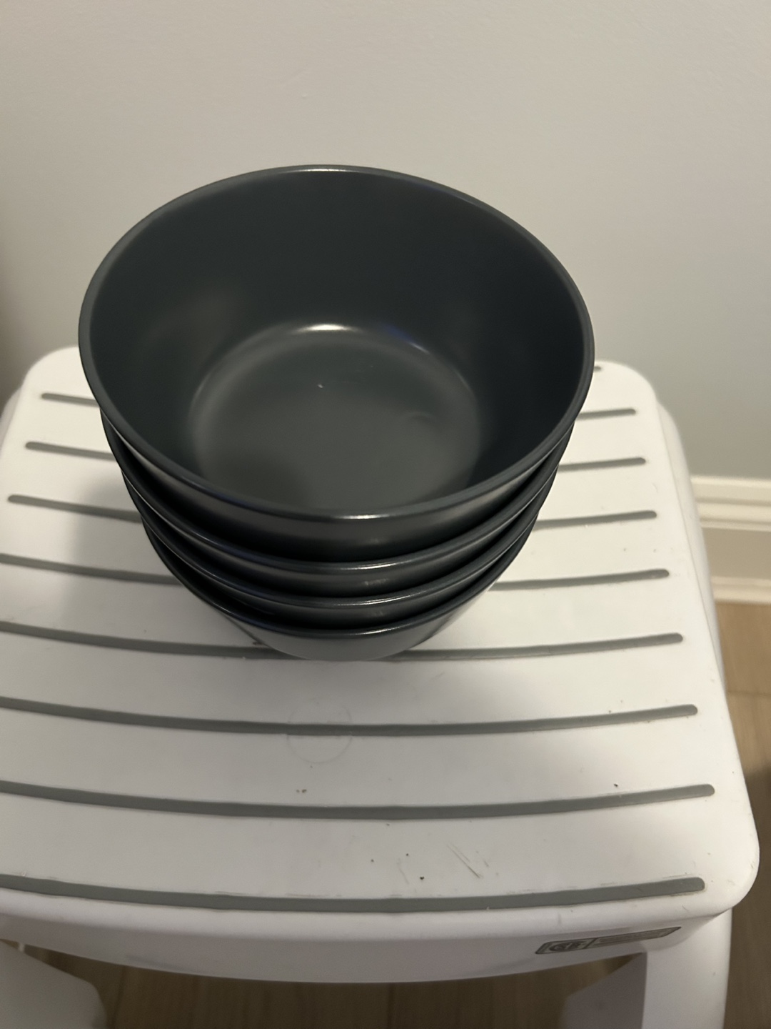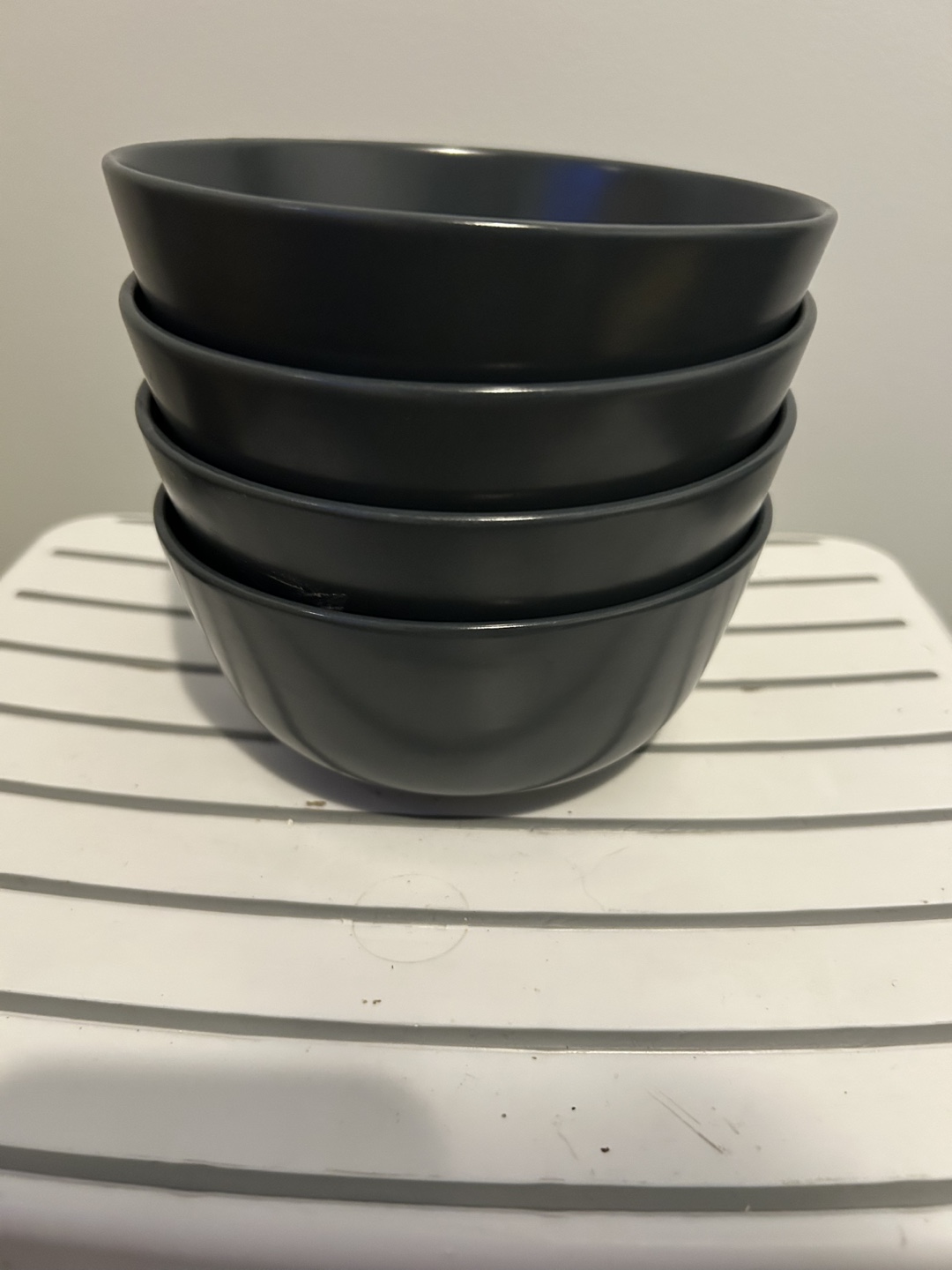 4 grey IKEA bowls, gently used (in good condition—no chips, nicks, or hairline fractures). $5//pickup southeast Vancouver.
