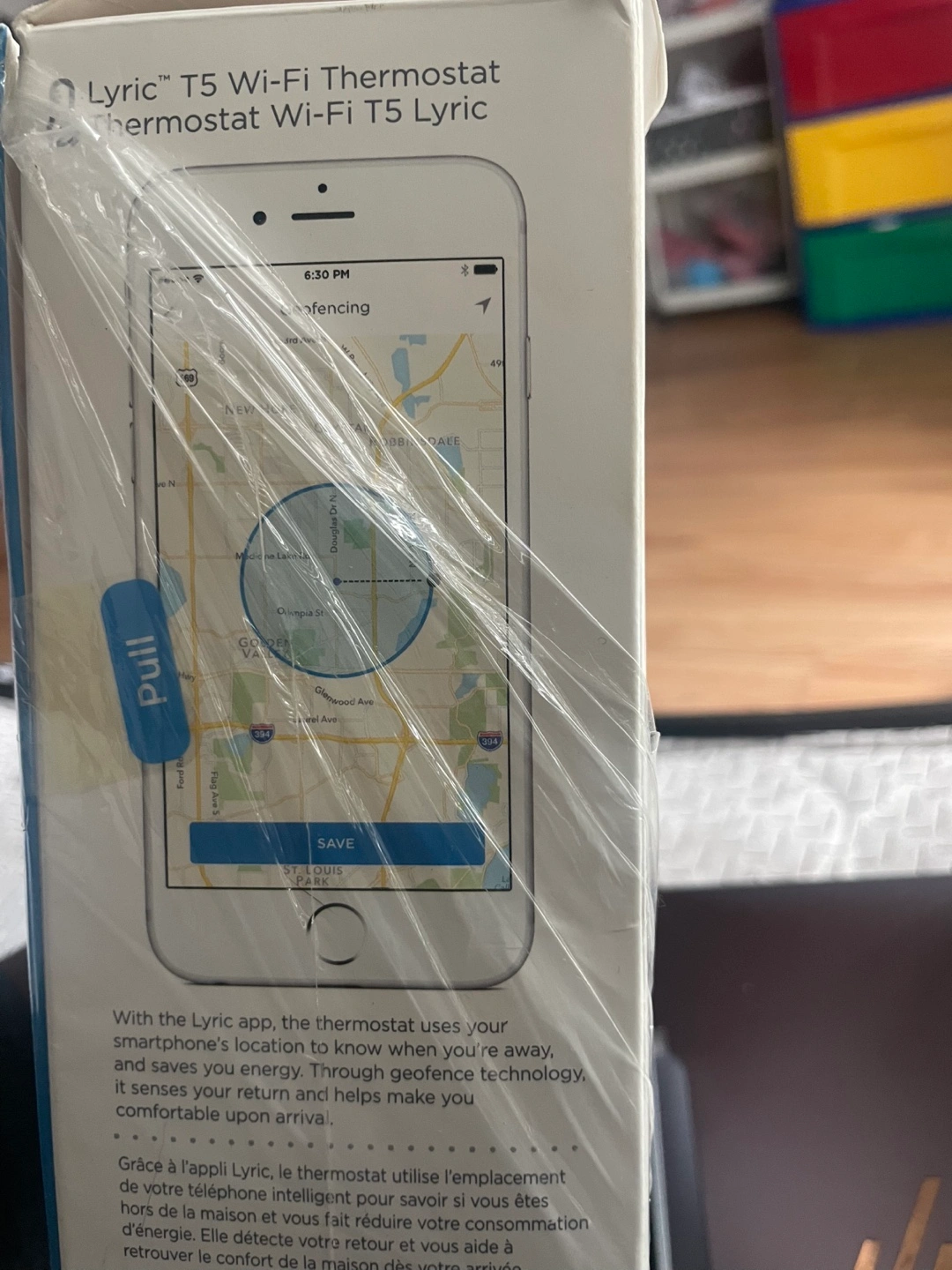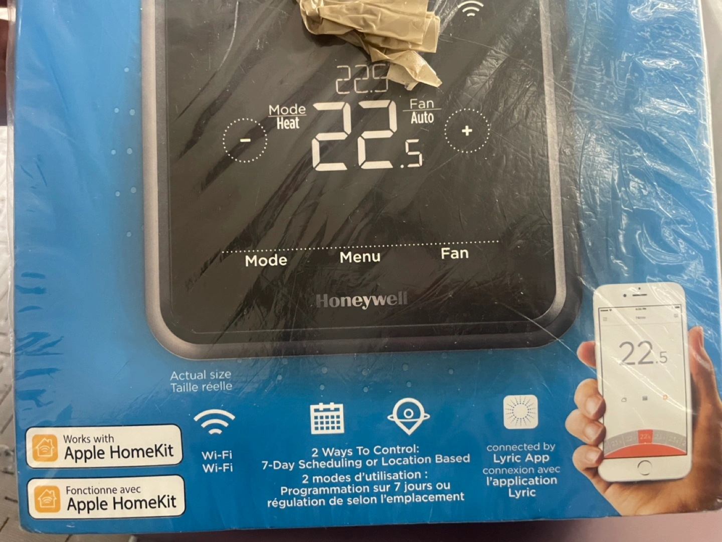 79Smart thermostat. Wi-Fi enabled. Works with Apple HomeKit. 7-day scheduling or location-based programming. Includes installation instructions and accessories. New, in box.