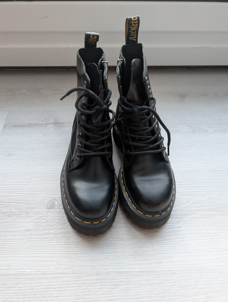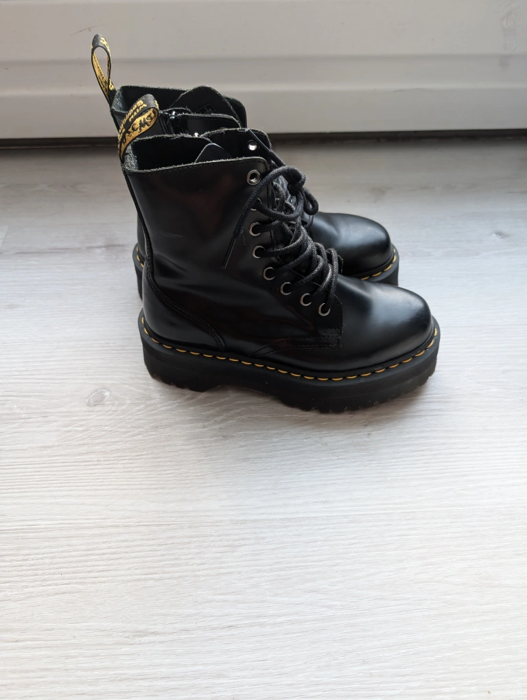 Black leather Dr. Martens Jadon platform boots.