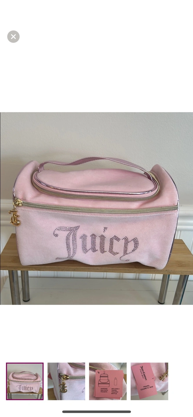 Juicy Couture makeup bags and train cases. Various colours and materials available. Great for travel or everyday use. All New with tags.